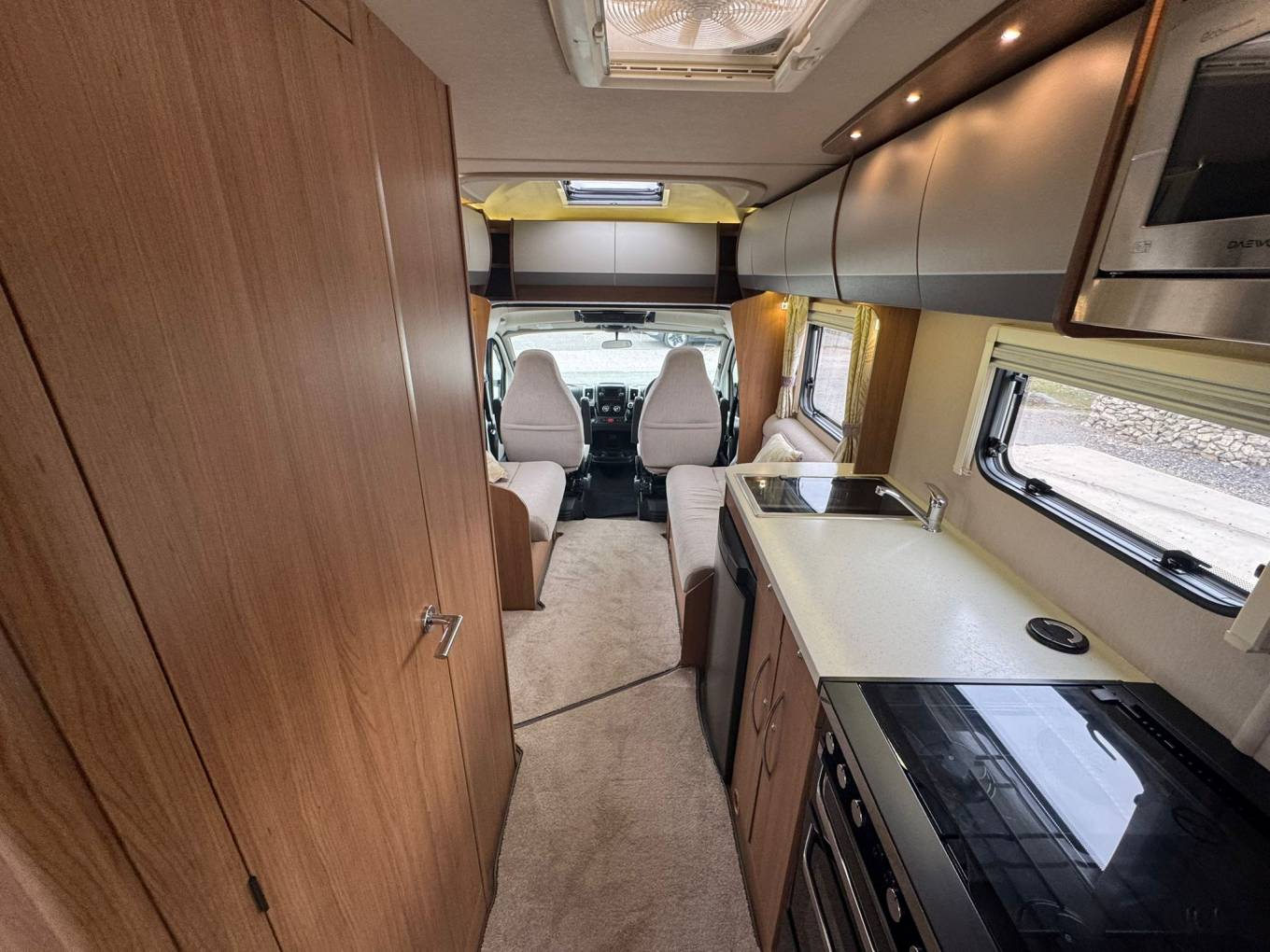 Towards the rear, you’ll find a combined washroom and a generous island bed, offering both practicality and comfort. Thanks to the Truma heating system, this motorhome is suitable for all-season travel—whether you're chasing the sun or exploring the countryside in cooler months.