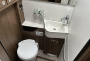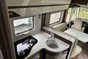 As you enter the van there is a well equipped kitchen featuring the latest Dometic Fridge freezer with doors that can be opened either way. A dual fuel 3 ring hob, eye level oven and grill, sink with mixer tap and plenty of drawer and cupboard space for all you kitchen essentials.