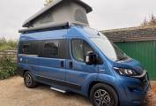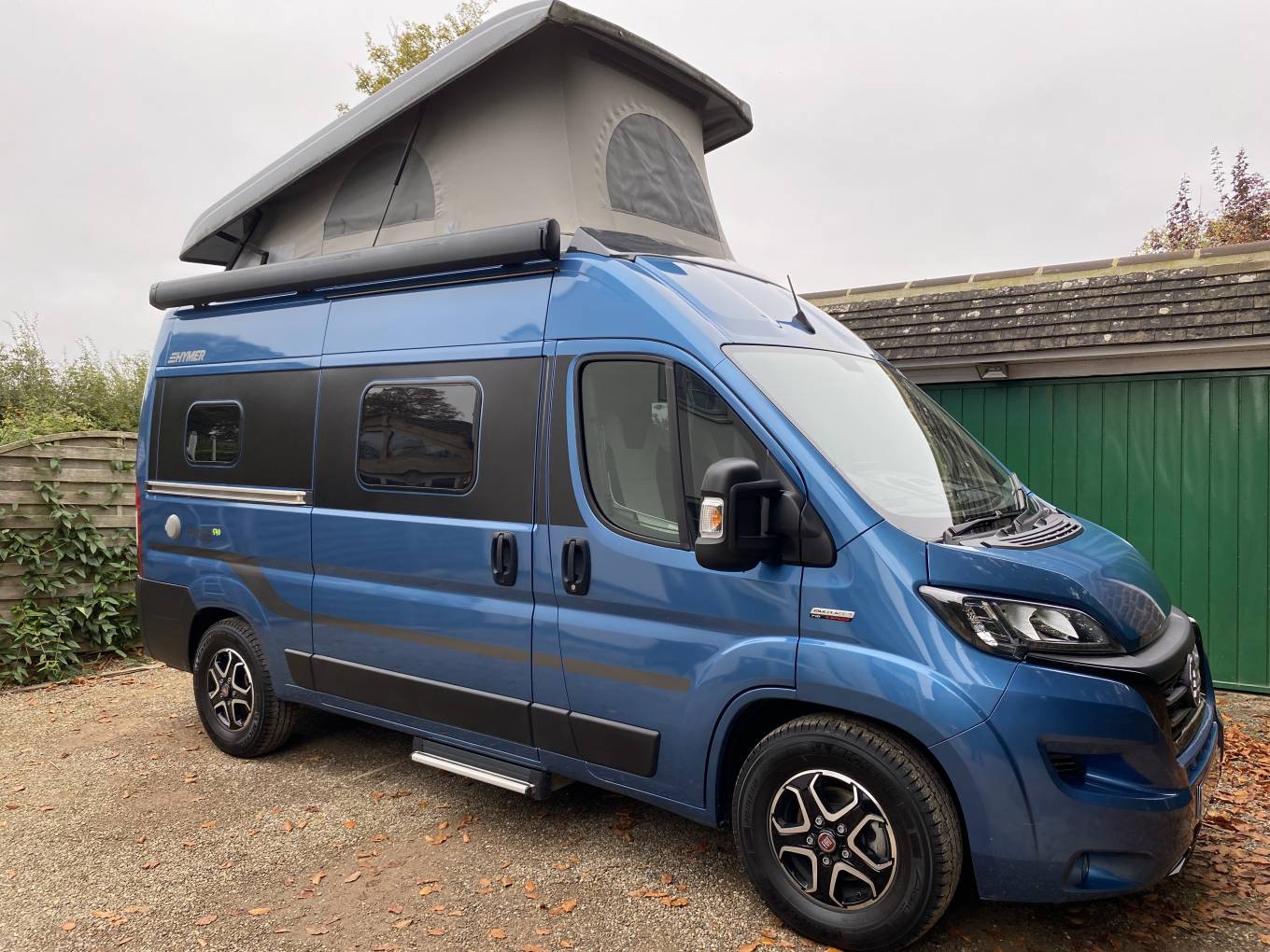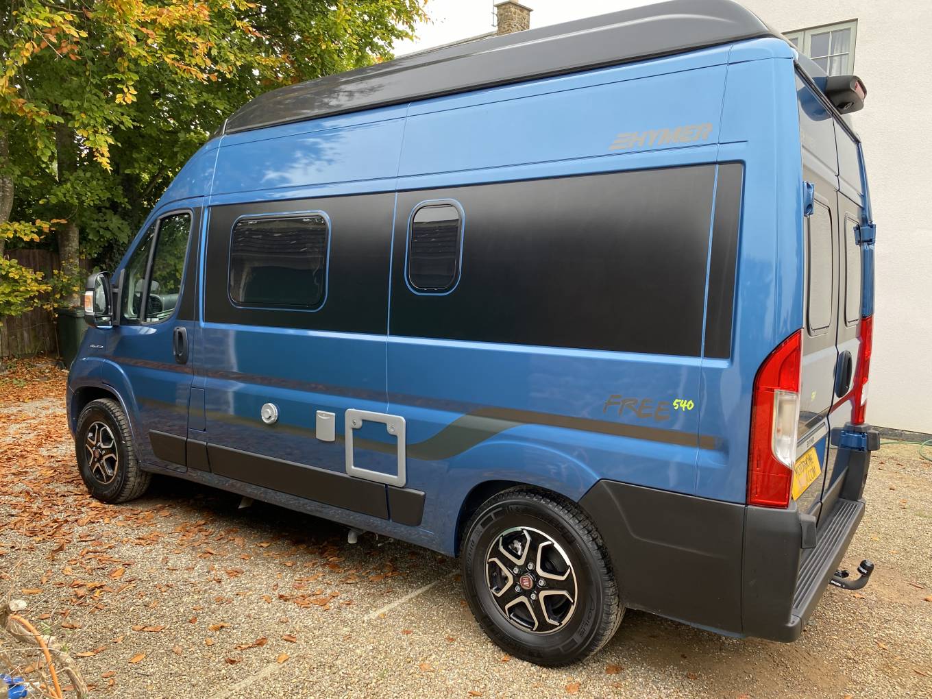 LOCATED IN NORTH OXFORDSHIRE, is this superb German built HYMER FREE 540 BLUE EVOLUTION in striking Storm Blue metallic paint finish. First registered in April 2022, it is a 4 berth and 4 travelling belt motorhome with the much sort after pop-top roof and rear bed with storage layout. Based on the Euro 6 compliant Fiat Ducato MultiJet3 140Bhp 2184cc diesel engine combined with the 9 speed AUTOMATIC gearbox. MOT is valid until April 2026. It has only 5,075 miles on the clock and was last serviced in April 2025 at 4,453 miles and the most recent habitation check was completed in March 2025. One owner from new.