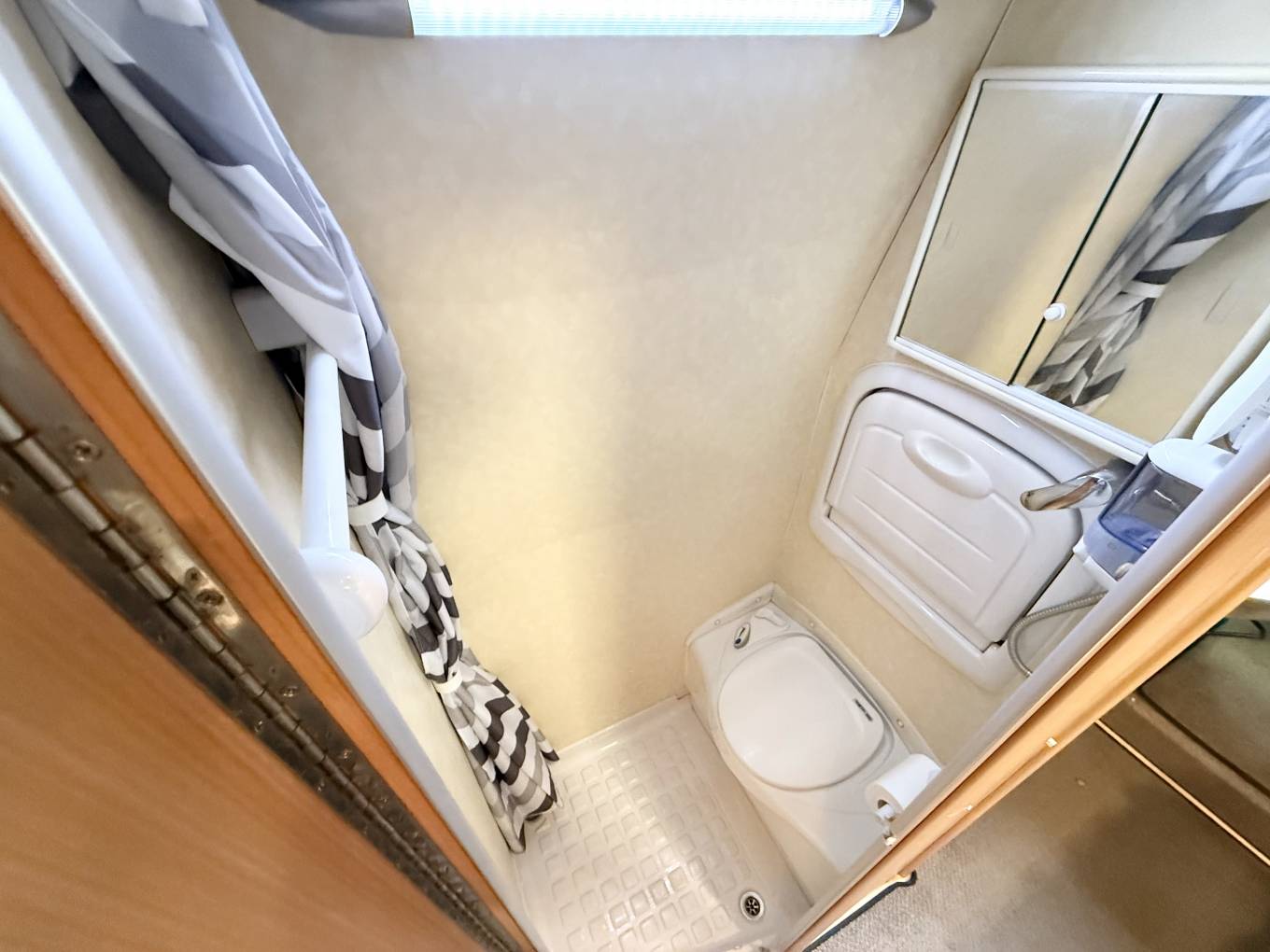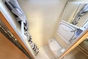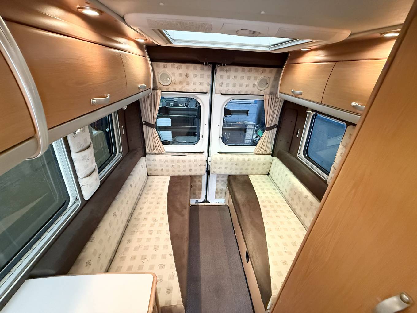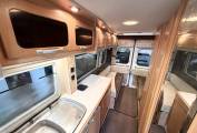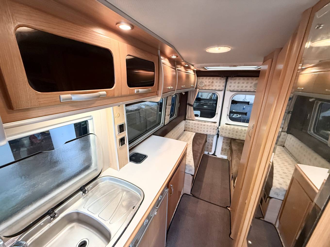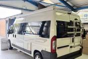 Upon entering the vehicle on the nearside sliding door, you are greeted with access to the cab with 2 belted seats, washroom to your right and the kitchen in front of you, leading to the comfortable rear lounge. This vehicle is the ultimate compact 2 person vehicle, and all the comforts of home, yet easy to park and navigate round country lanes. There is also plenty of storage space to house all your clothes, bedding and equipment. The rear lounge has a cosy feeling, benefitting from comfortable fabrics and the level of finish set this motorhome apart from others in its class. The central kitchen comes complete with oven, hob, fridge/freezer, microwave and sink/drainer. Opposite the kitchen area is a well equipped washroom with shower, Cassette toilet and wash basin. Above the shower is a roof light which gives extra ventilation and light. Curtains and blinds fitted in the body of the vehicle. Once inside, you can't help but notice the full run of windows down the side of the vehicle - making it feel really open, yet from outside the tinting provides privacy.