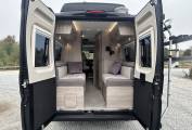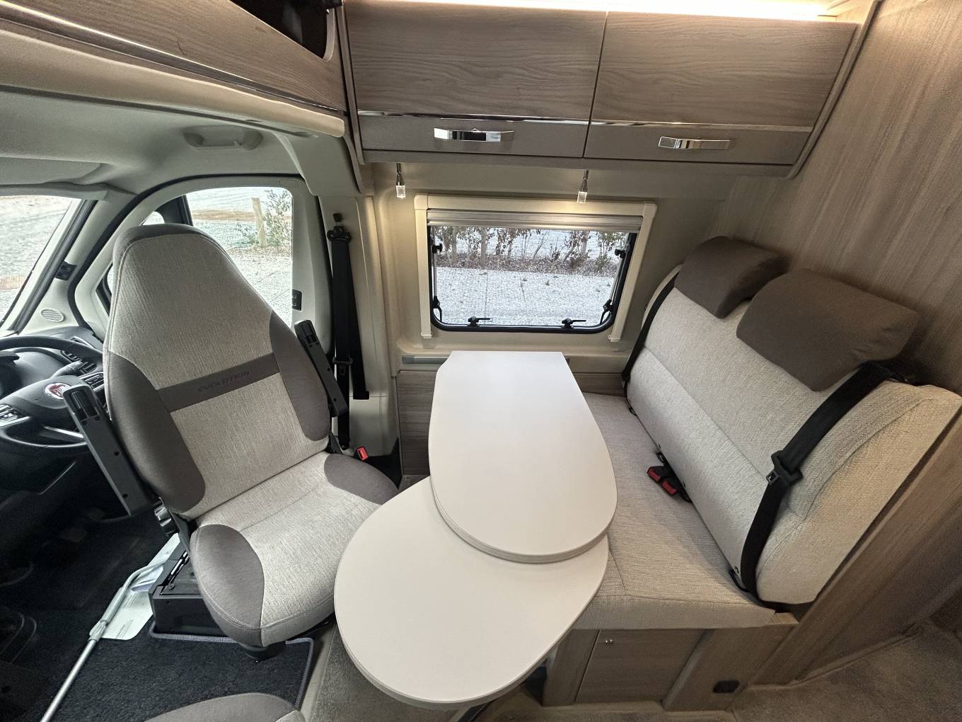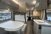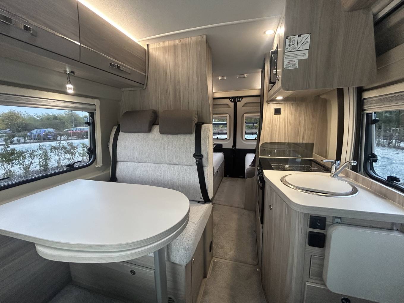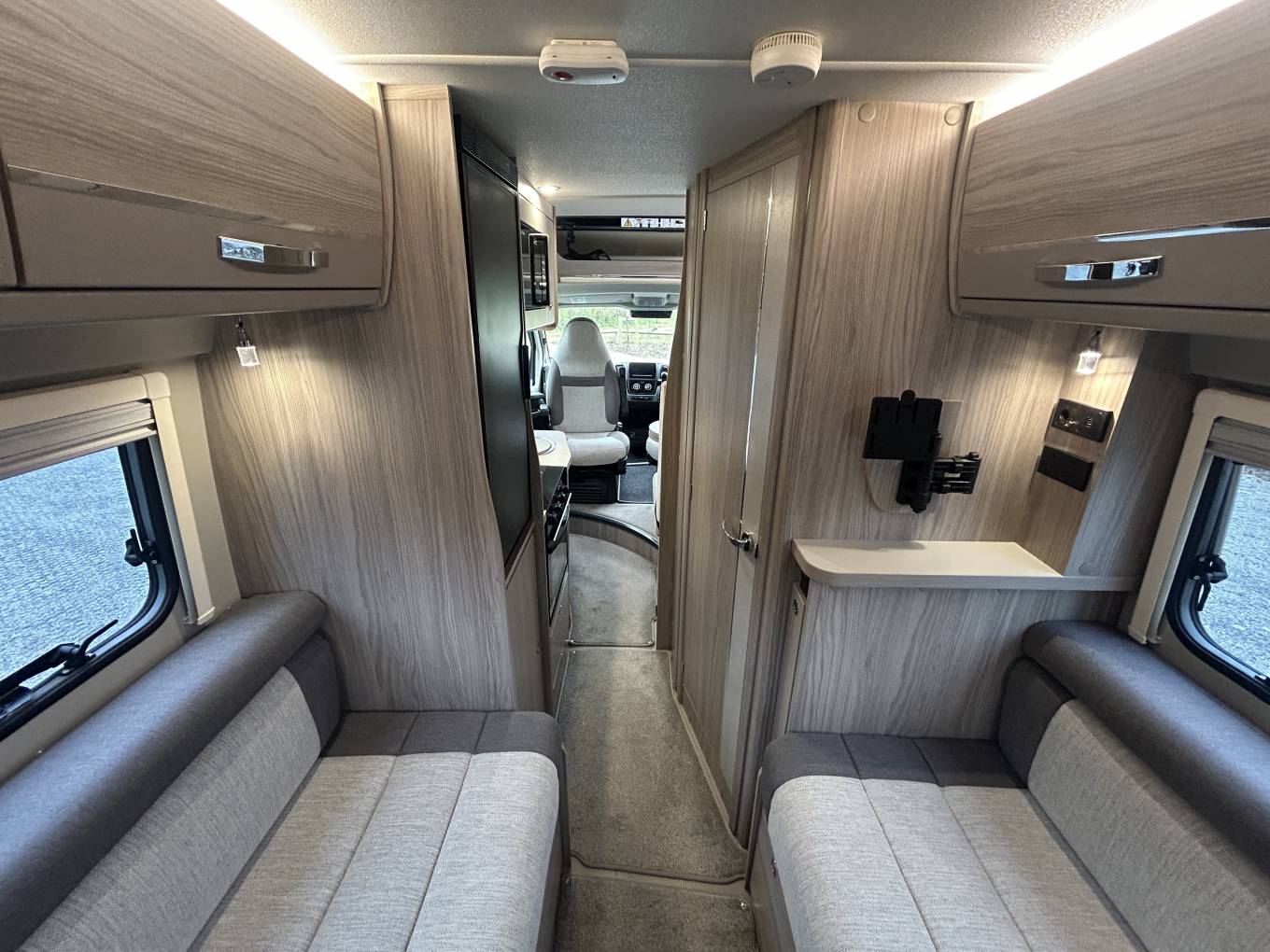 The 9-speed automatic gearbox delivers a smooth and enjoyable driving experience, complemented by cruise control, sat nav, Bluetooth connectivity, electric windows, and wing mirrors. The front seats swivel to create a comfortable dining area, complete with an extendable table and two forward-facing seats with seatbelts. Storage wall units provide convenient space for all your essentials.