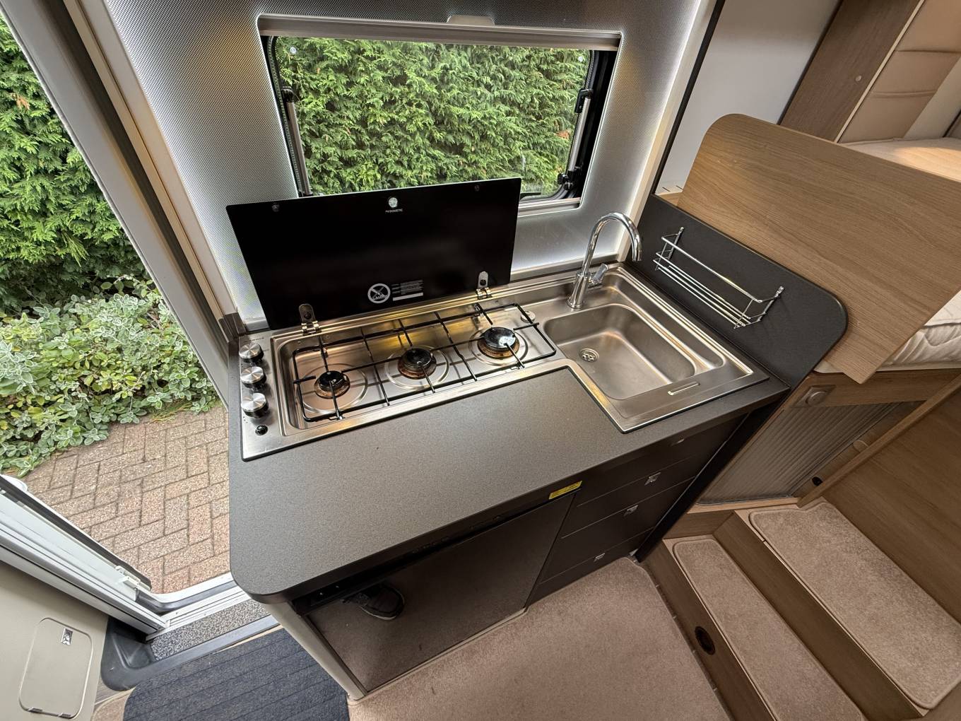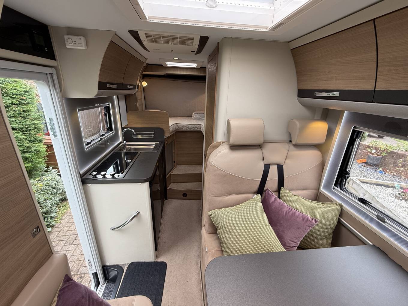 Adria Compact Plus SLS with Fixed Rear Bed and Garage. This motorhome is 6 metres long but it has a clever design feature which allows part of the rear of the van to slide out to create a hugh rear bed. It has one owner form new, service history, including cam belt and water pump change, current hab check and has done 21,000 miles. The layout comprises the fixed rear bed, in the centre is the kitchen and bathroom and at the front is thr loung area with adjustable table and captains seats. The rear garage provides ample storage and the motorhome is in excellent condition throughout. It comes with Cab and Habitation Air Con,Cruise Control, Alarm, Rear Camera, Dab Radio, Alloy Wheels, Blown Air Heating, Aerial, Canopy Awning, Gas Bottle, Mains Lead and 2 sets of keys. Available for viewing by appointment in Barrow, call for more photos, videos and information.