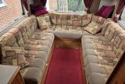 Moving onto the Kitchen area, this has all facilities needed for your holiday, included is an oven with grill, three burner gas hob with an electric hot plate, sink with drainer, full size fridge freezer and ample storage.
