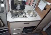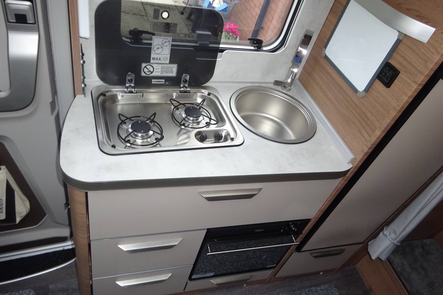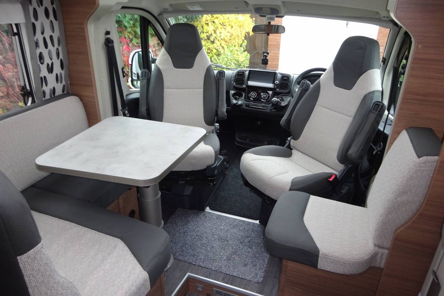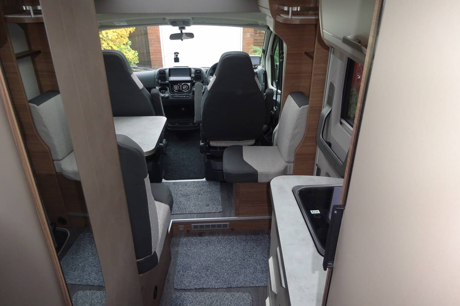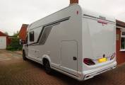 The outside of the motorhome is in excellent condition. As you step inside the motorhome you get a feel for the newness of this motorhome. It is light and airy and in excellent condition. At the front of the motorhome you find a large seating area that benefits from two captains chairs to supplement the settees and has a sliding table to allow easy access. It has a well equipped kitchen with a large fridge with ice box, 2 burner gas hob, oven and grill, and sink. Adjacent to the kitchenette you find the bathroom fitted out with a toilet, sink and fold away shower cubicle all in excellent condition. At the rear of the motorhome you find twin beds that can be made in to a large double if required. With a single bunk made up from the dinette it it easily sleeps 3. There is plenty of storage throughout the motorhome and benefits from a large rear garage that could comfortably hold anything you may wish to take with you!