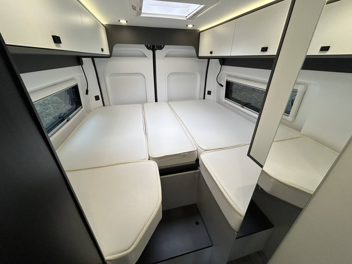 Built on a robust and smooth-driving Fiat Ducato chassis with automatic transmission, the V630J is ideal for those seeking a premium touring experience with minimal effort. The layout features rear fixed single beds, offering comfort and convenience without the need to convert seating areas each night. Beneath the beds is a generous rear garage space, perfect for storing outdoor gear or luggage.