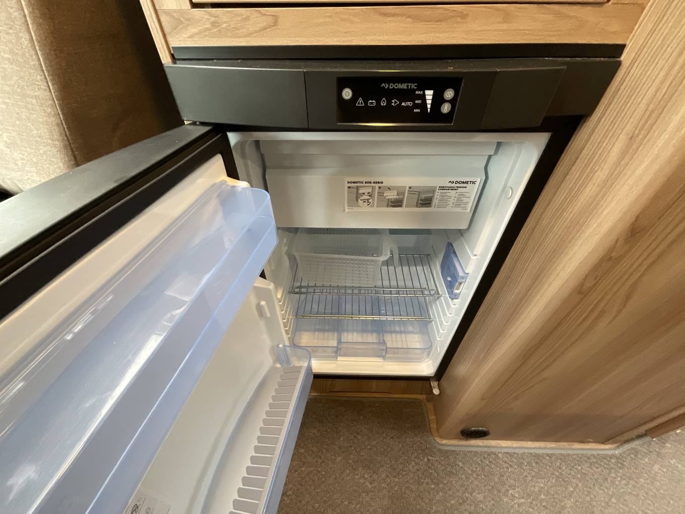 Inside, the Swift Champagne 122 feels bright and inviting, with twin side settees that easily convert into a spacious double bed. The fully equipped kitchen includes an oven, grill, hob, and fridge/freezer, while the modern washroom features a shower, toilet, and basin, providing all the comforts of home on the road. Heating and hot water are supplied by the Truma system, ensuring you stay warm and comfortable all year round.