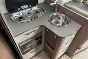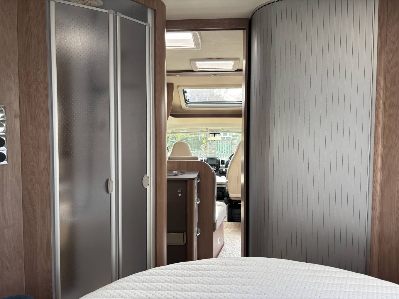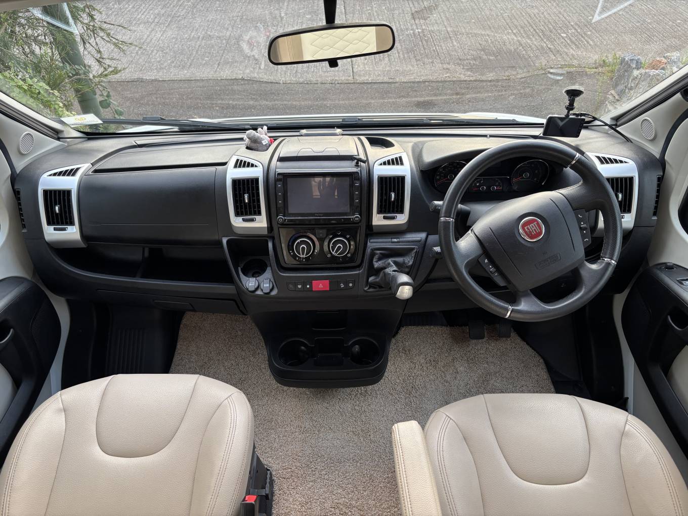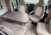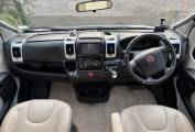 In the cab, the stereo system with touchscreen offers digital radio, sat nav, USB port, and Bluetooth phone connectivity, ensuring entertainment and convenience on every journey. The Truma heating and hot water system keeps the interior cosy all year round, and the low-profile front with skylight allows plenty of natural light to flood the living space, giving it a bright and open feel.