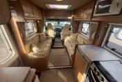 This motorhome has Luxurious ALDE wet central heating, wood effect flooring with loose fit carpets, black-out blinds and fly-screens and an abundance of storage throughout and it also has a fitted reversing camera, TV Ariel and outside you have a fixed wind out canopy, bike rack and a Fiamma habitation security door lock. This motorhome also has had fitted but is not working just now a WAECO habitation air conditioning unit and a VDO satellite system.