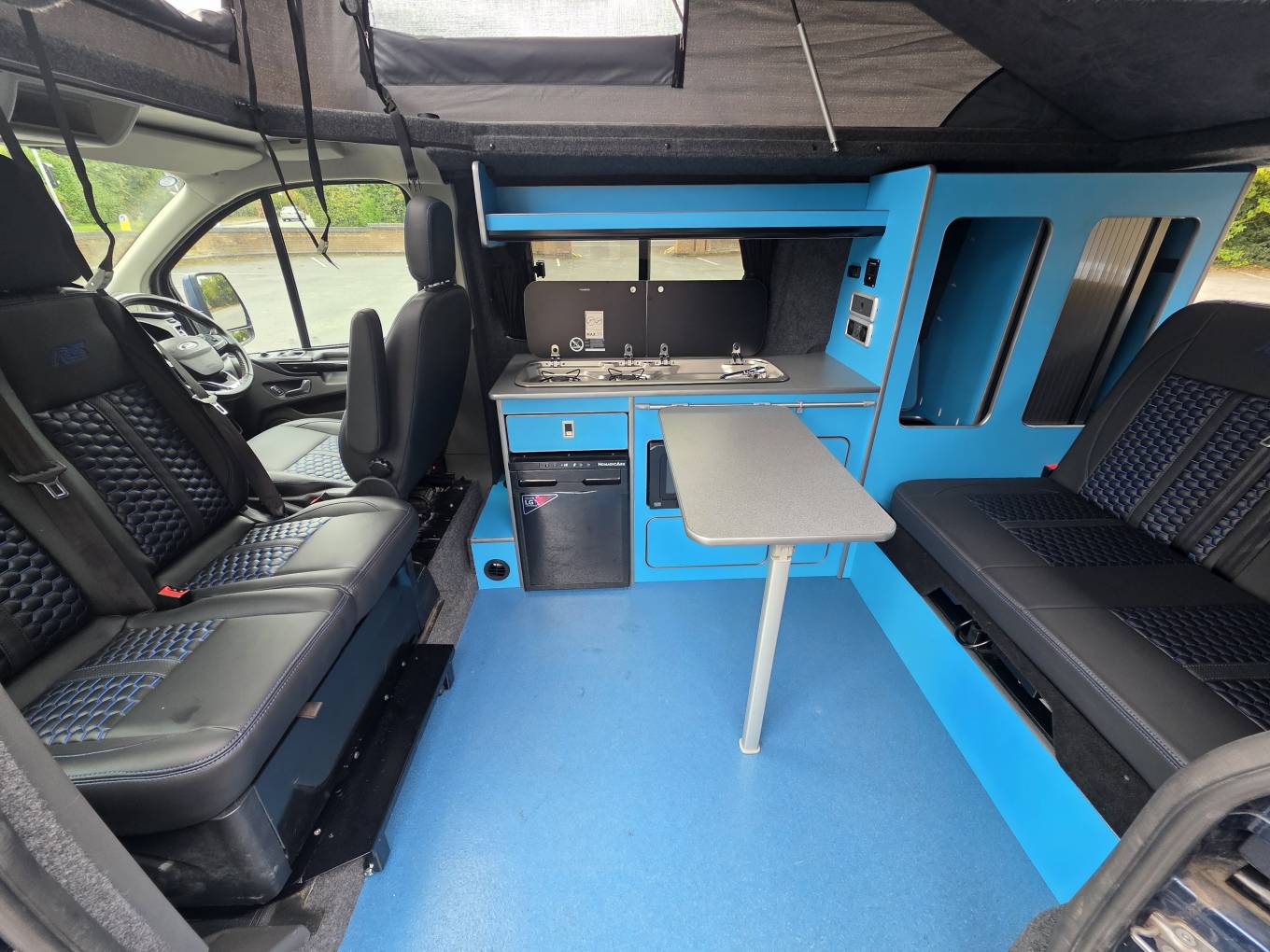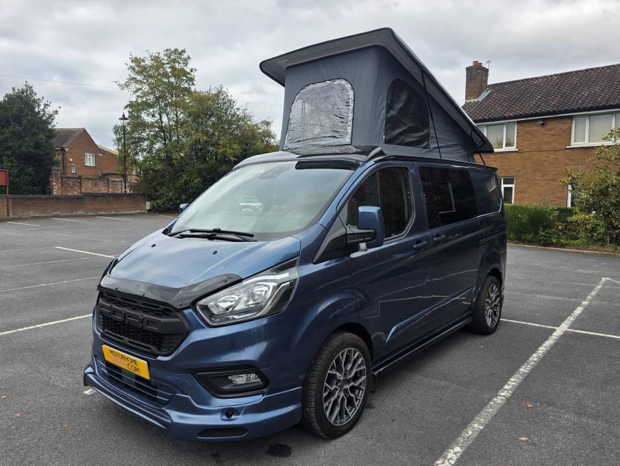 Motorhome Depot are pleased to present this beautiful 2019 Ford Transit Custom Limited. This camper is finished in a stunning blue with new 18” Alloys wheels, great service history, has the uprated 170BHP engine and is fitted with some great features including a 3000W Pure Sine Wave Inverter, Microwave and Solar making this the perfect off grid camper as the inverter can be switched on and run the microwave and the mains sockets! You won’t find many campers done to this high specification.