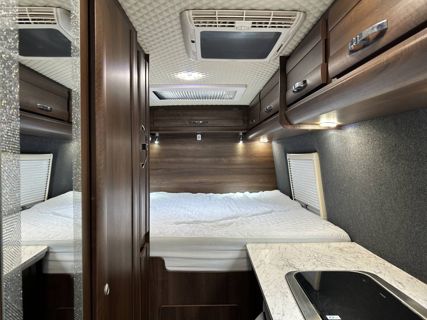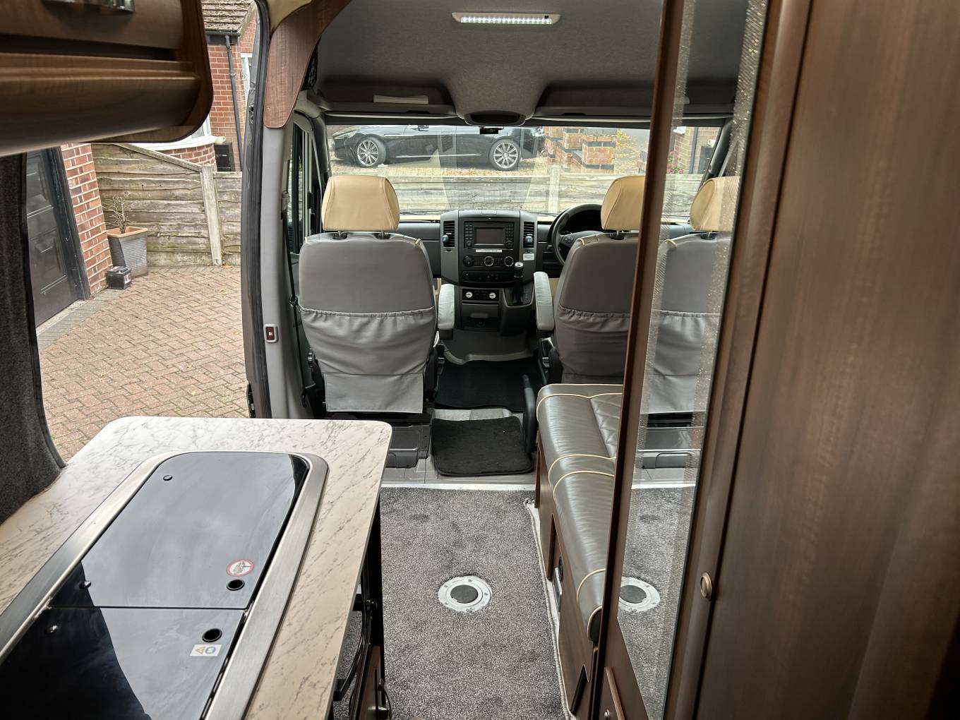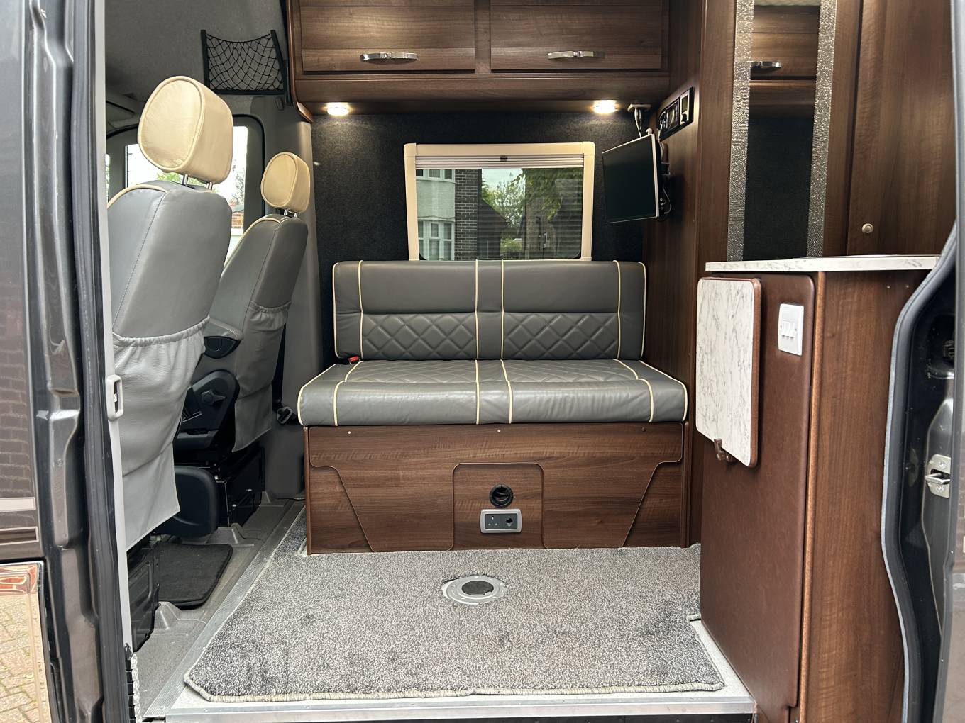Finished to the highest quality we have this Mclaren Shadow Sport 2 berth 2018 Mercedes Sprinter camper with 17,200 miles length 7.5m. It has Air Suspension, E & P Hydraulic self levelling, a solar panel with 2 leisure batteries, a dash cam and a reversing camera. As you enter through the side door, to your right we have the kitchen area that has all you need, 2 gas rings, sink with glass lid, fridge with freezer compartment, a small oven /grill, plenty of storage and a good size worktop. Directly opposite there is a very nice modern washroom with toilet and shower with fold down sink. Moving to the back there is a stunning very large double bed with storage underneath. This area also has a wall mounted television. Both front seats swivel around and there is a removable dining table. Other features include Airconditioning in both the cab area and the habitation area, refillable gas tank, wind out awning. All of the habitation windows have blackout blinds on them and also has a sky light at each end of the camper making it light and airy. It has alloy wheels and a large rear garage with extractor fan ideal for storage. For those sunny days there is a fixed awning canopy.