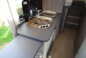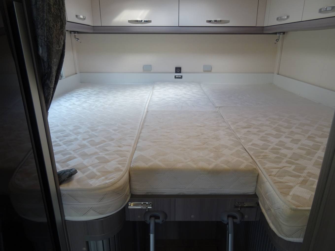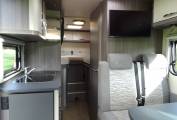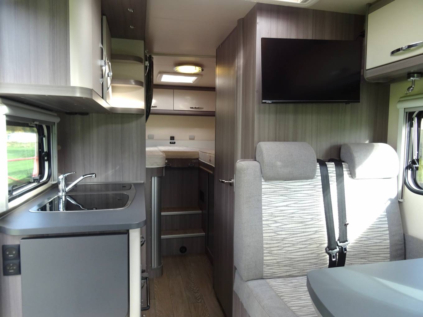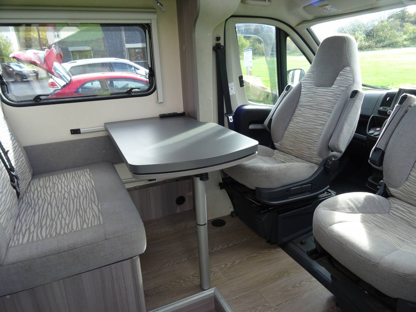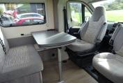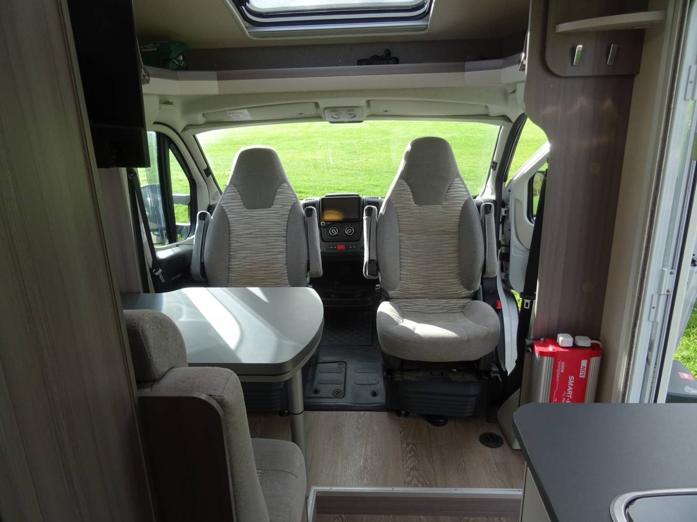 Internally, it has rear fixed beds which can be used as two single beds or can be converted into a large double bed. There are two swivelling, front captain seats which help create a front dining area with the other seats being a double seat (with 2 seatbelts) all surrounding a removable table which has created a great area to dine and relax in.