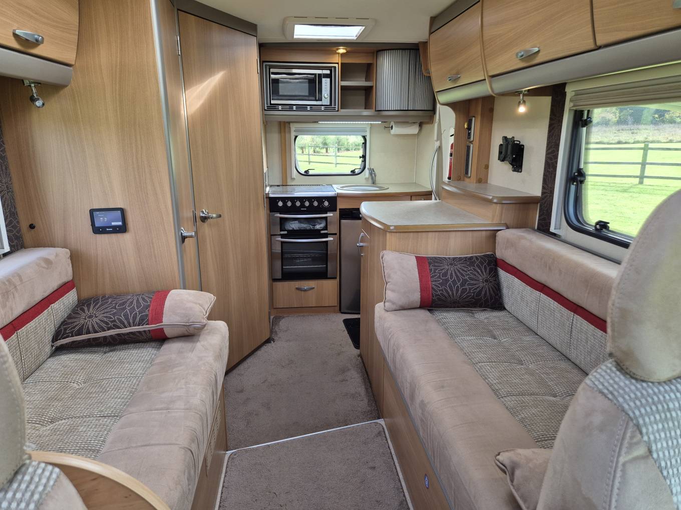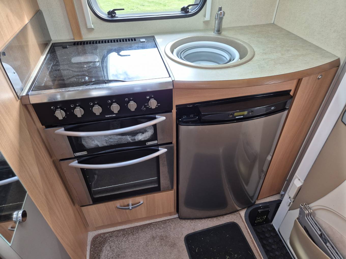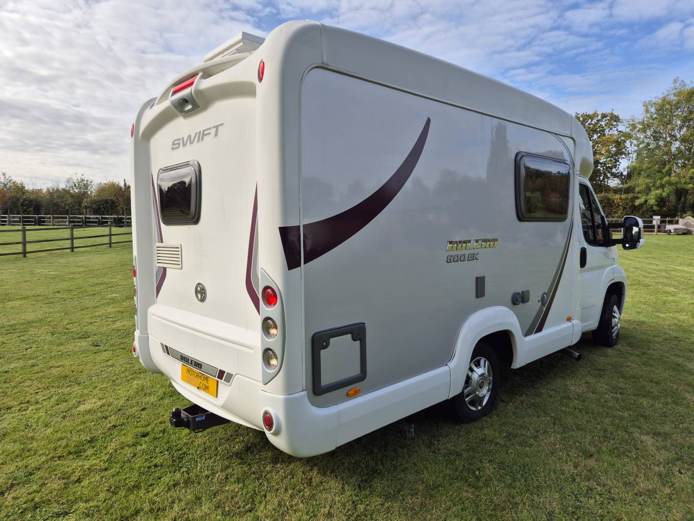 Motorhome Depot are pleased to bring to market this 2011 Swift Bolero 600EK 2 berth motorhome, based on the Fiat Ducato, 2.2 ltr, 5 speed manual gearbox. This compact model measuring just under 6m in length offers great use of space and has been well cared for by just 2 owners. The Motorhome is End Kitchen, fully equipped with Thetford Oven and Grill, 3 Gas burner hob and electric plate, microwave, sink, mixer tap, worktop, 3 way fridge with freezer box, overhead units, slimline storage cupboard for the table, extra work station and storage to the side, with sockets, TV point and bracket. Also at the rear is a large washroom with 2 separate solid bi-fold doors for the shower and toilet, there is a wash basin and storage. Adjacent to this is a large hanger wardrobe.