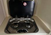 At the rear of the van is the kitchen comprising of a fridge with freezer compartment, 2 ring gas hob, grill, sink with mixer tap and 2 handy drop down worktop extensions. There are storage cupboards above and a cupboard below housing a Porta Potti(new). Moving through the van are 2 single beds that can easily be converted to a large double also 2 Large side windows that flood the van with natural light. The windows have fly screen/blinds and original curtains. There are also curtains that pull to shut cab off from sleeping area.