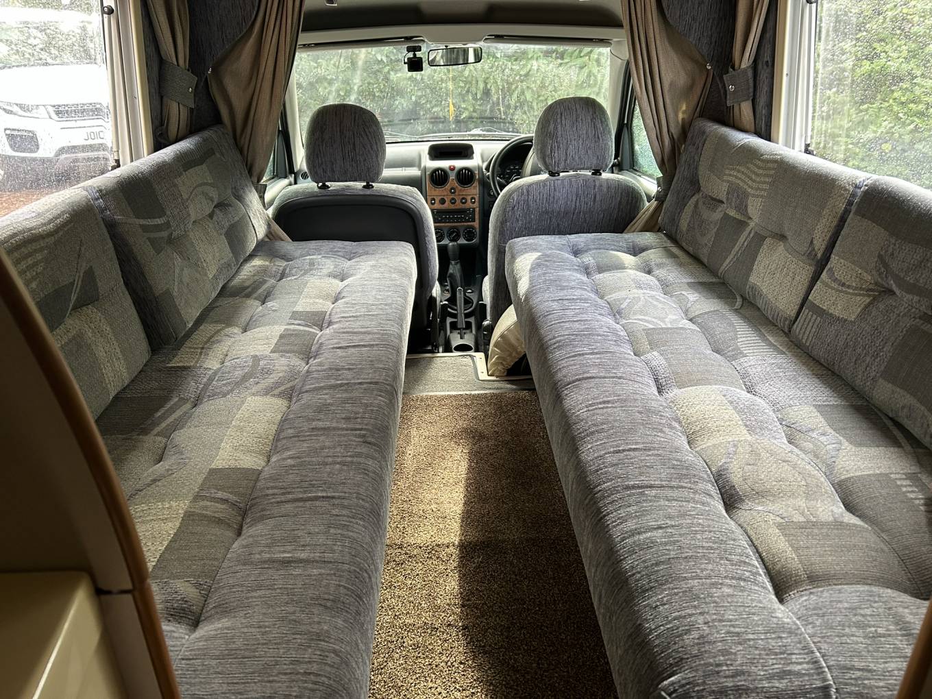 Other benefits of the van are a new leisure battery, sockets, 12v control panel, a rising roof and diesel heating.