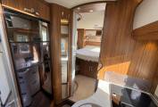 2.12m headroom creates a light and open space, with overhead lockers and a full-length living area floor extending right to the front cab. The swivel driver and passenger seats integrate seamlessly into the lounge, while the large under-bed garage (1.14m loading height) easily stores bikes, scooters, or bulky luggage. Powered by the refined 2.3L MultiJet engine and automatic gearbox, this Hymer offers effortless performance with impressive economy.