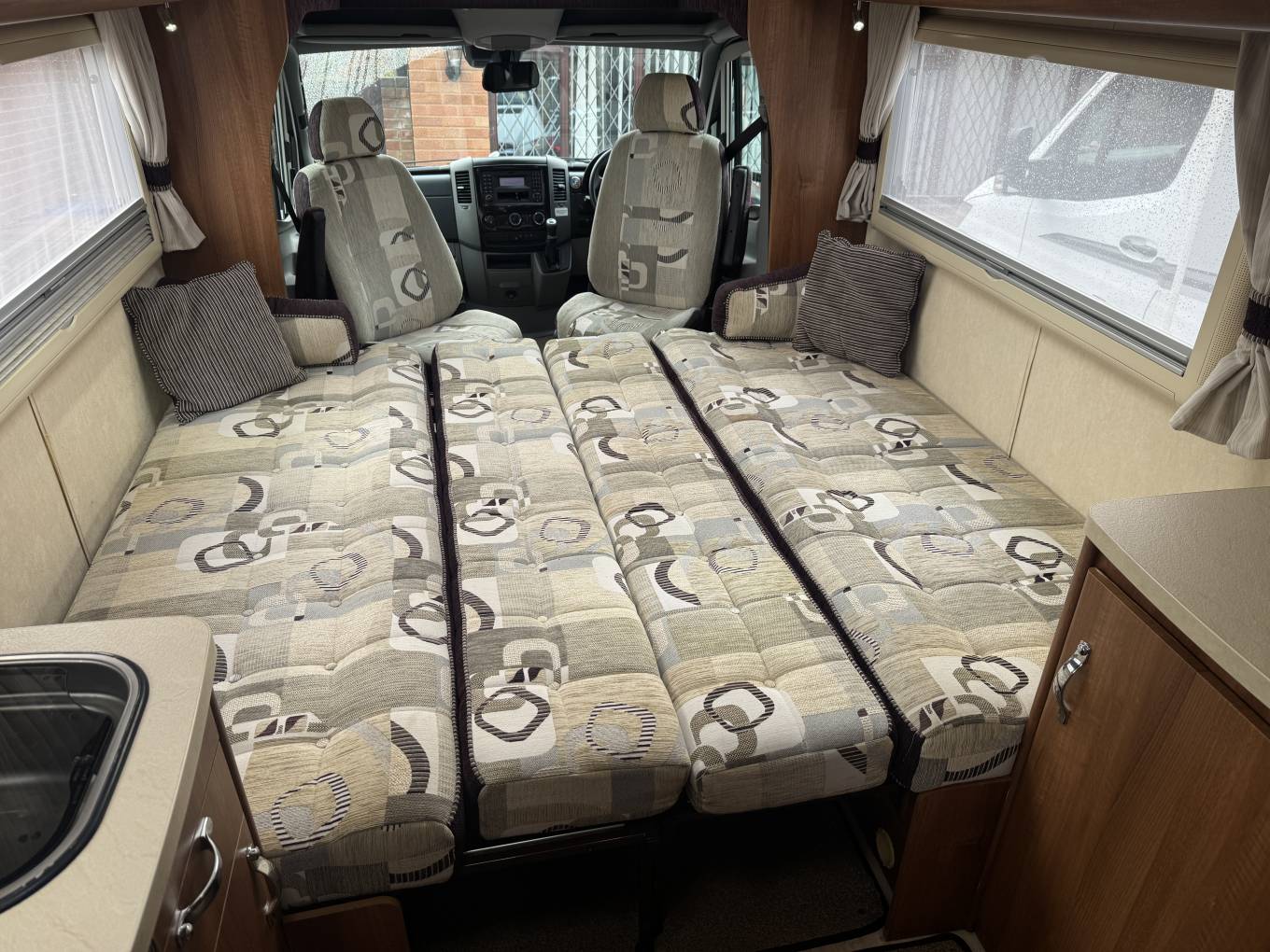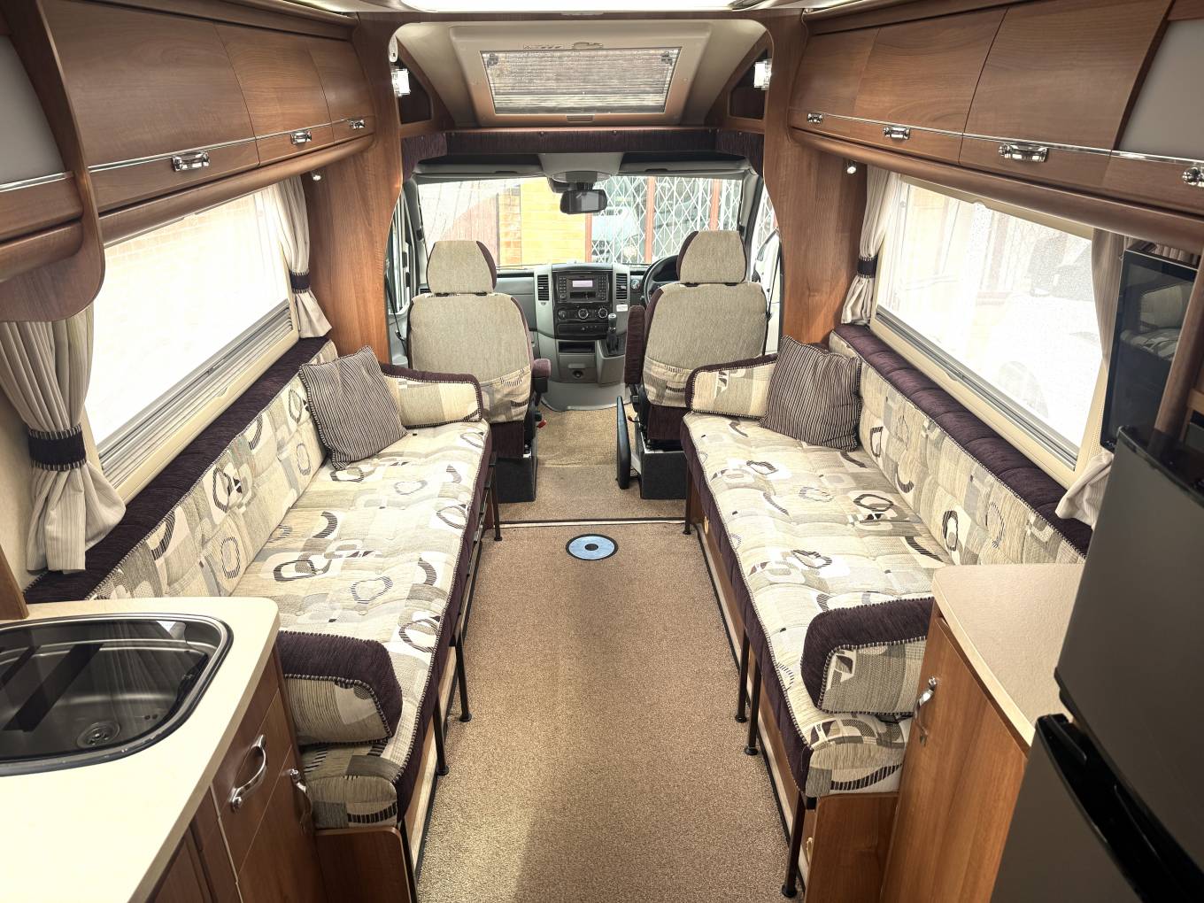 In in the cab, the vehicle has a automatic gearbox, bluetooth phone, radio, reversing camera and satellite navigation. There are also air conditioning, electric windows and mirrors. Externally there is a wind out awning to allow al fresco dining, BBQ point, a tow bar along with external storage lockers.