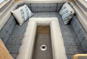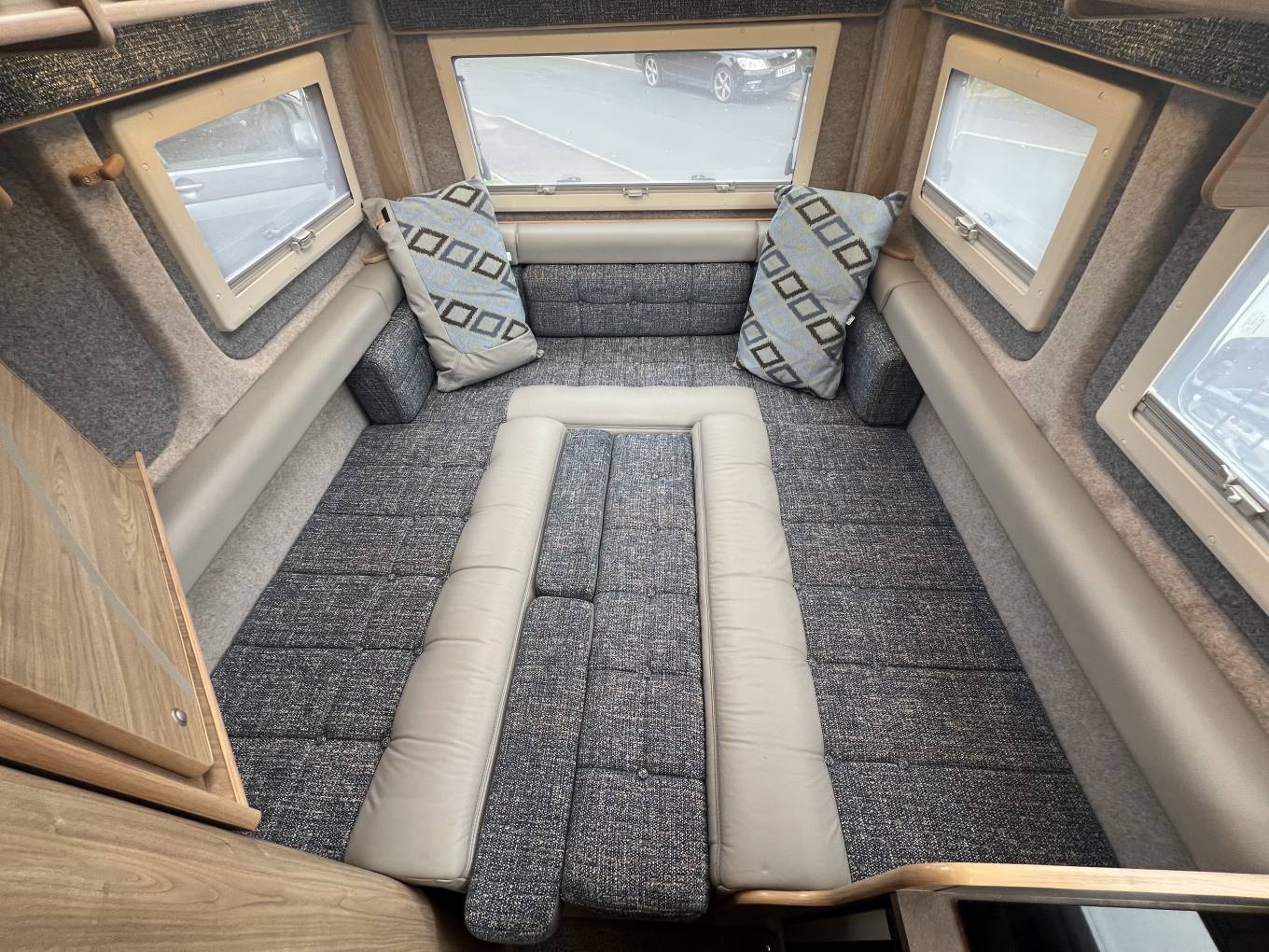 Internally above, is the rear U shape lounge, which also can be used as 2 single beds and a double. There is plenty of storage here, plus Avtex TV with satellite receiver