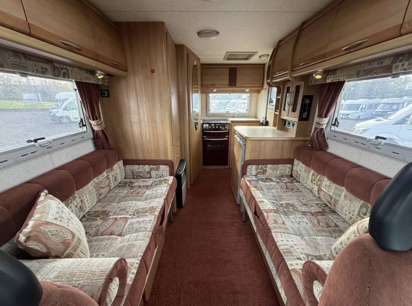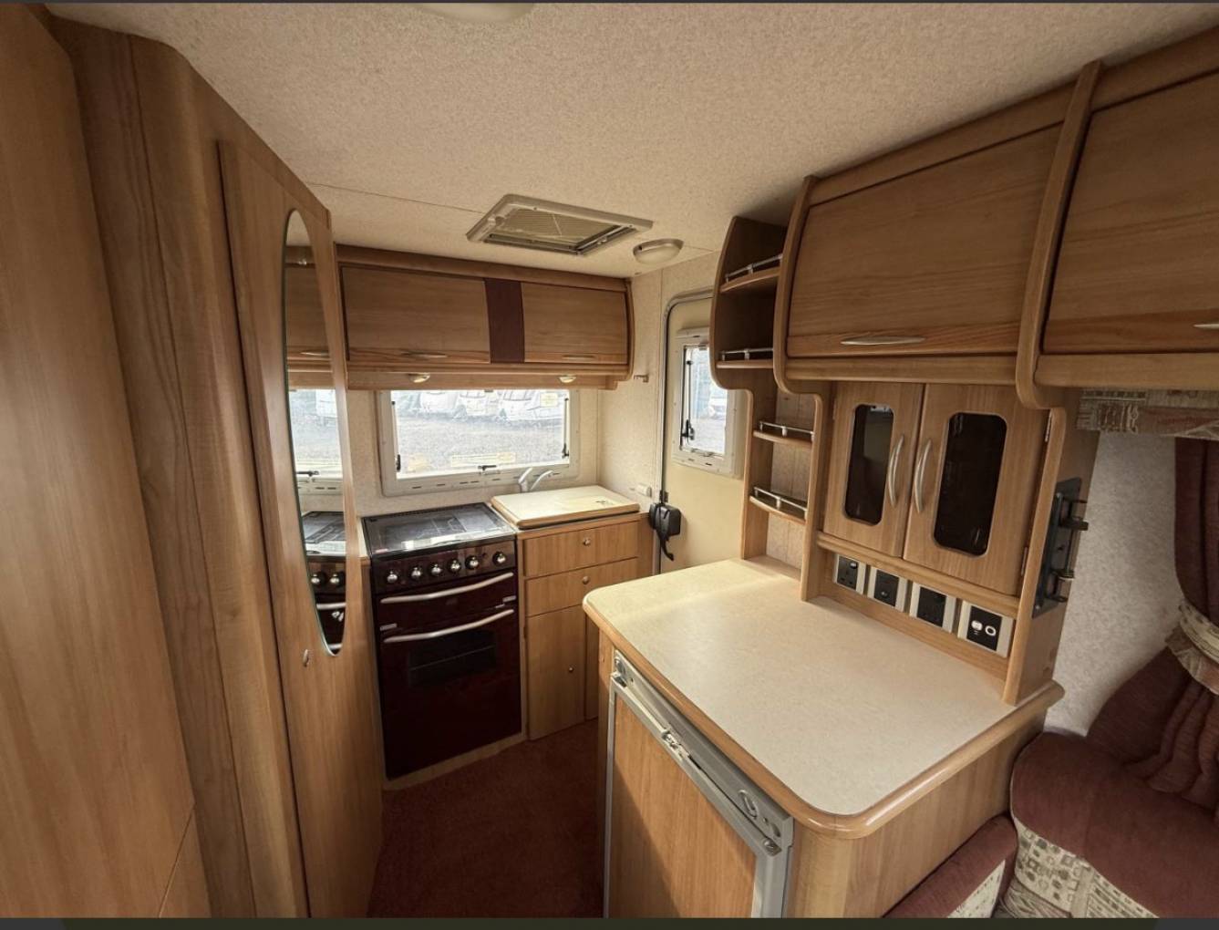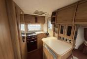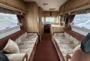 Stepping inside the Autocrusie using the steps provided you enter the rear kitchen, this has all facilities including a full oven & grill, sink with mixer tap, three-way fridge with freezer compartment, plenty of workspace space, storage and a drinks cabinet. Adjacent from the kitchen sits the washroom this houses a toilet cassette, hand wash basin, mirrored cabinet and shower.
