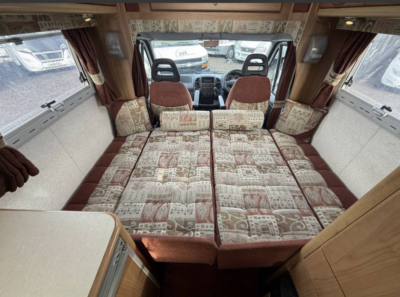The front lounge has 2 bench seats with swivelling front seats which gives plenty of lounging space with this area transforming easily at night into a large double bed or if you don't fancy making up the bed you can easily use the bench seats as two singles.