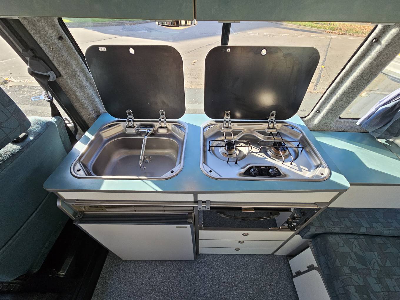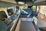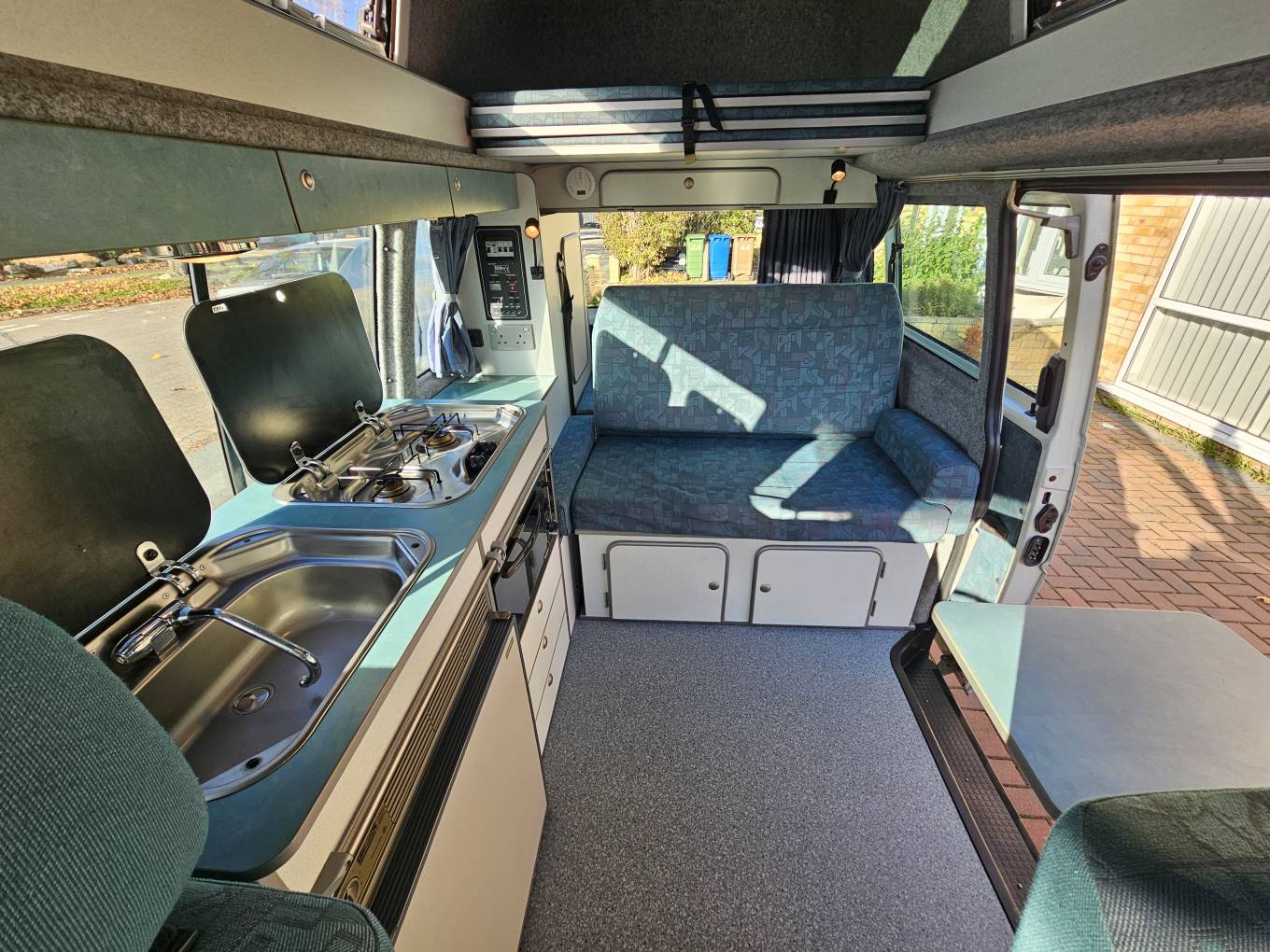 This camper also benefits from an underslung fresh water and waste tank setup, helping to maximise interior storage and usability. There is no washroom onboard, which leaves more space for living and sleeping. Heating is via a portable or plug in setup (not built in), which is standard for this type and age of conversion.