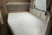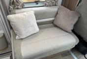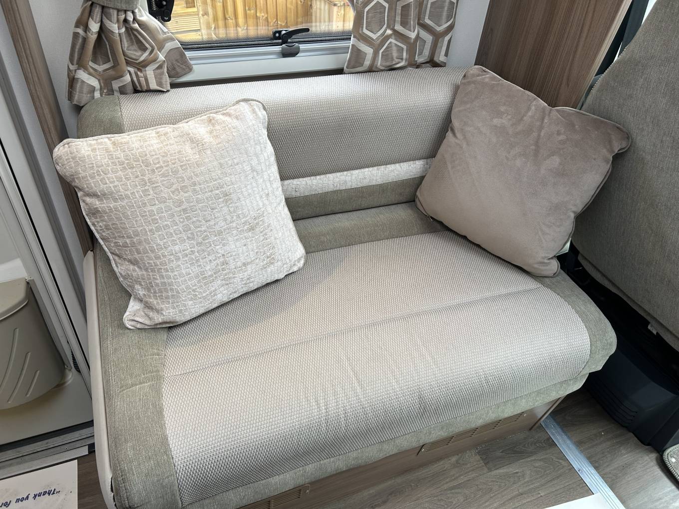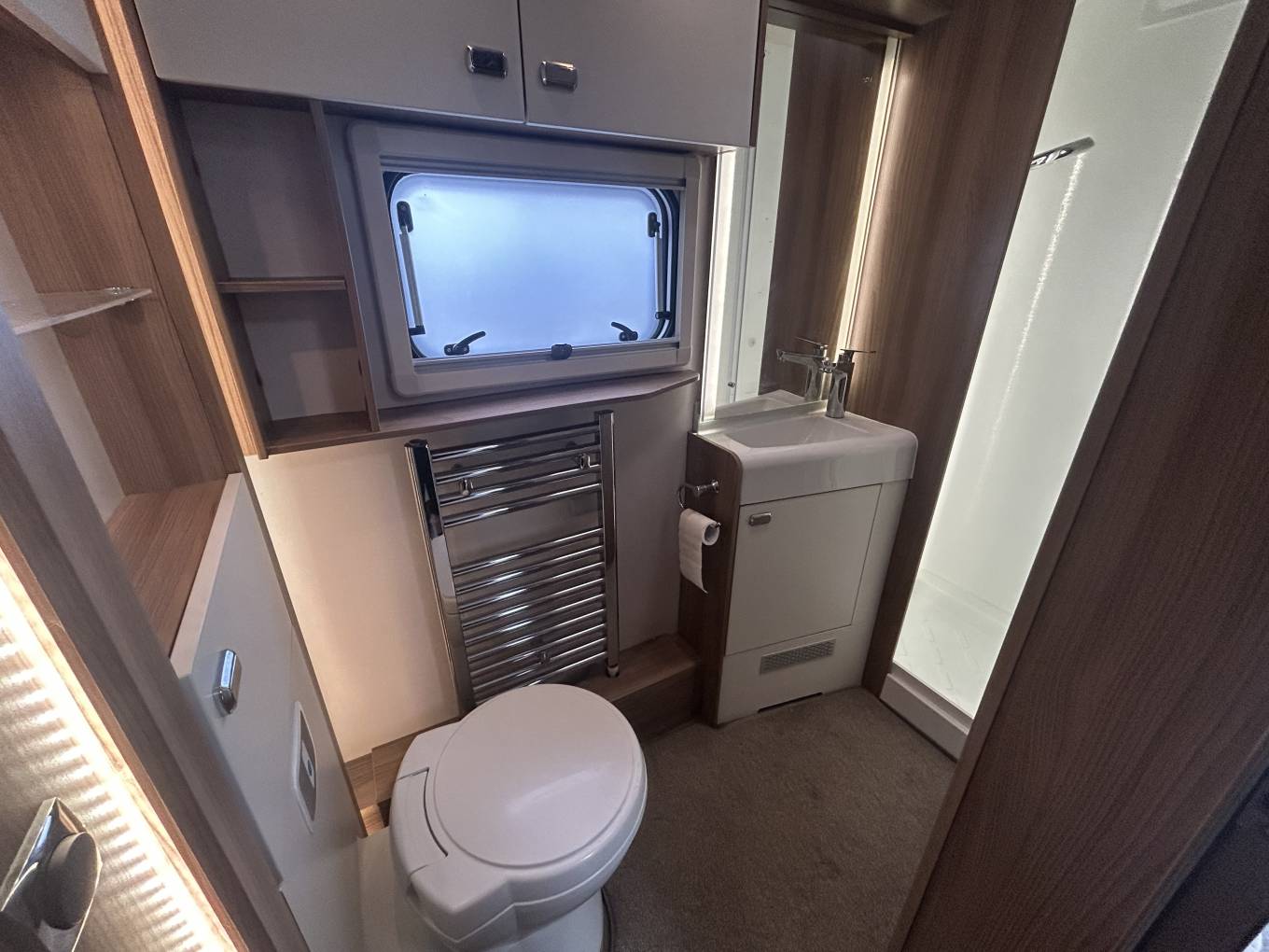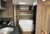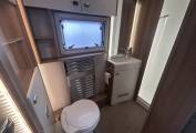 Inside, you’ll find a beautifully designed living space with opposing lounge benches that convert into a double bed, a rear fixed bed, and a full-width washroom featuring a separate shower, toilet, and heated towel rail. The fully equipped kitchen includes a slimline fridge freezer, oven, grill, hob, sink, and microwave, while Alde heating and generous storage throughout ensure maximum comfort wherever you travel.