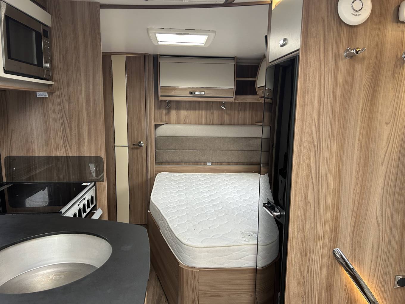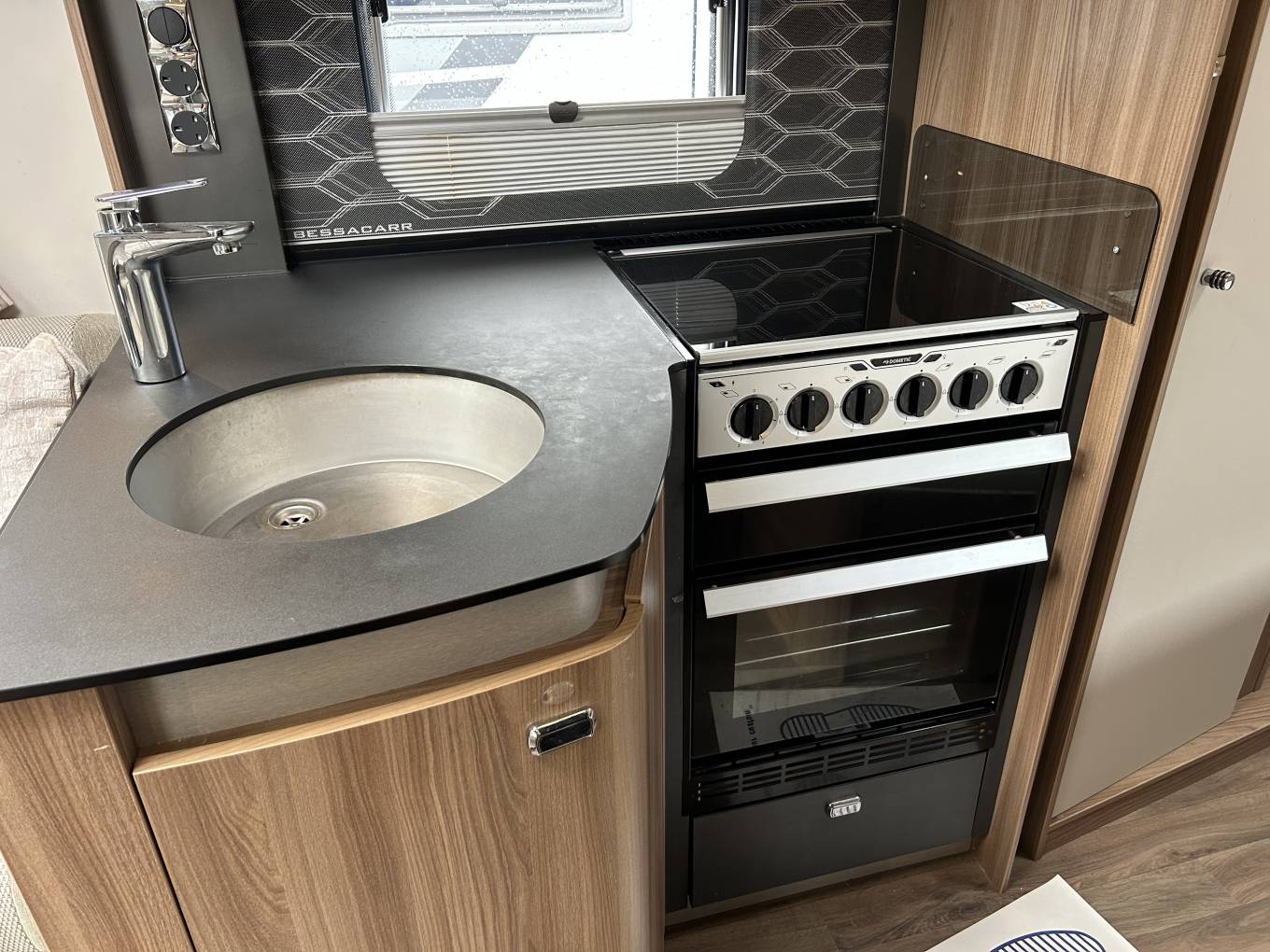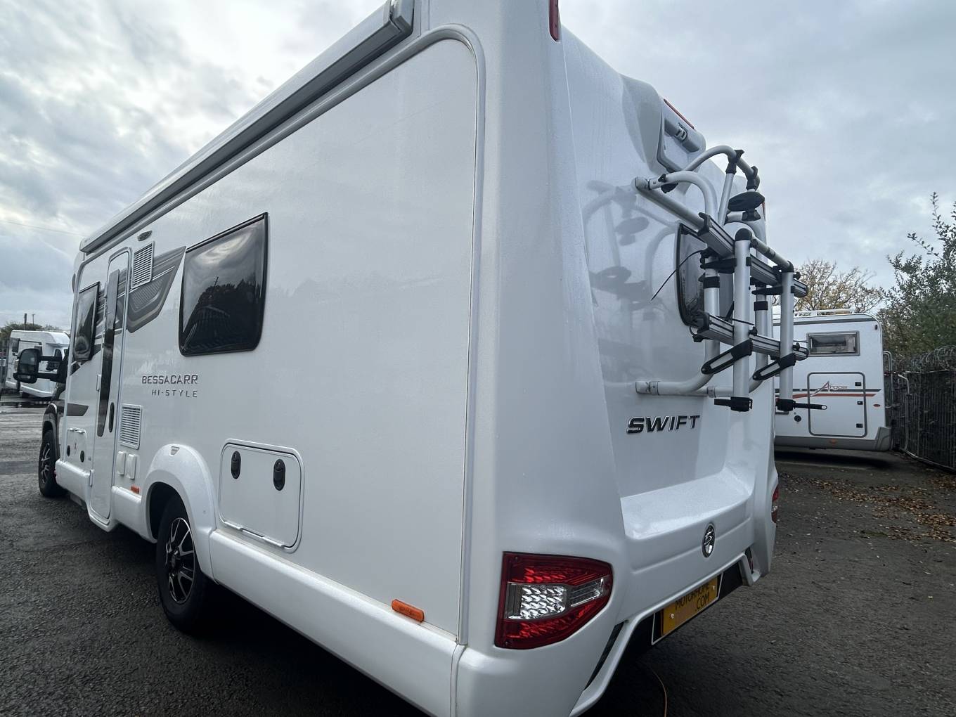 Externally, this Bessacarr benefits from a solar panel, Thule wind-out awning, external lockers, TV aerial, bike rack, Autowatch alarm, and Paintseal protection.
