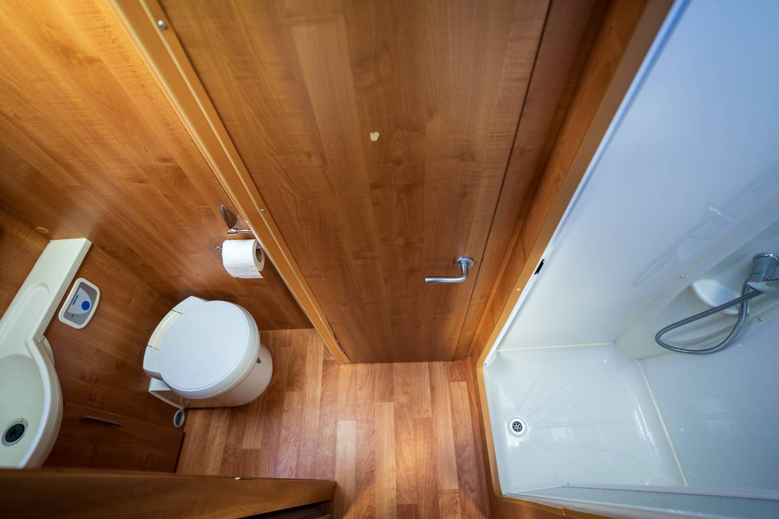 Ablutions - In a unique first, the bathroom and washroom can be separated either side from both the lounge and the bedroom, with a double set of intelligent privacy dividers. The washroom is equipped with a thetford toilet, vanity sink and mirror, alongside plenty of storage. Whilst opposite is the large shower room, with a fully enclosed seamless shower cubicle ensuring your have the best possible en-suite experience.