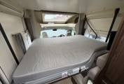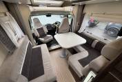 The Lounge area is a lovely light space to relax and rewind and comes with a large centre table, side bench, TV and also when more than 2 people in the camper the front seats swivel into the living area. Above the lounge area is the large electric drop down bed. One thing you will notice inside the Benimar is the abondance of natural light you get and how well the camper has been designed to ensure you have everything you need for your travels and with the length under 6 metre no adventure is off limits.