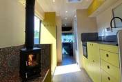 - 4 seat Lounge & dining area, (with under bench storage), featuring a beautifully installed statement piece Wood burner with radiating fins & surrounded by attractive Moroccan heat reflecting tiles