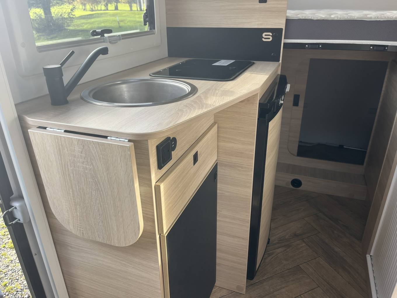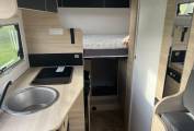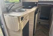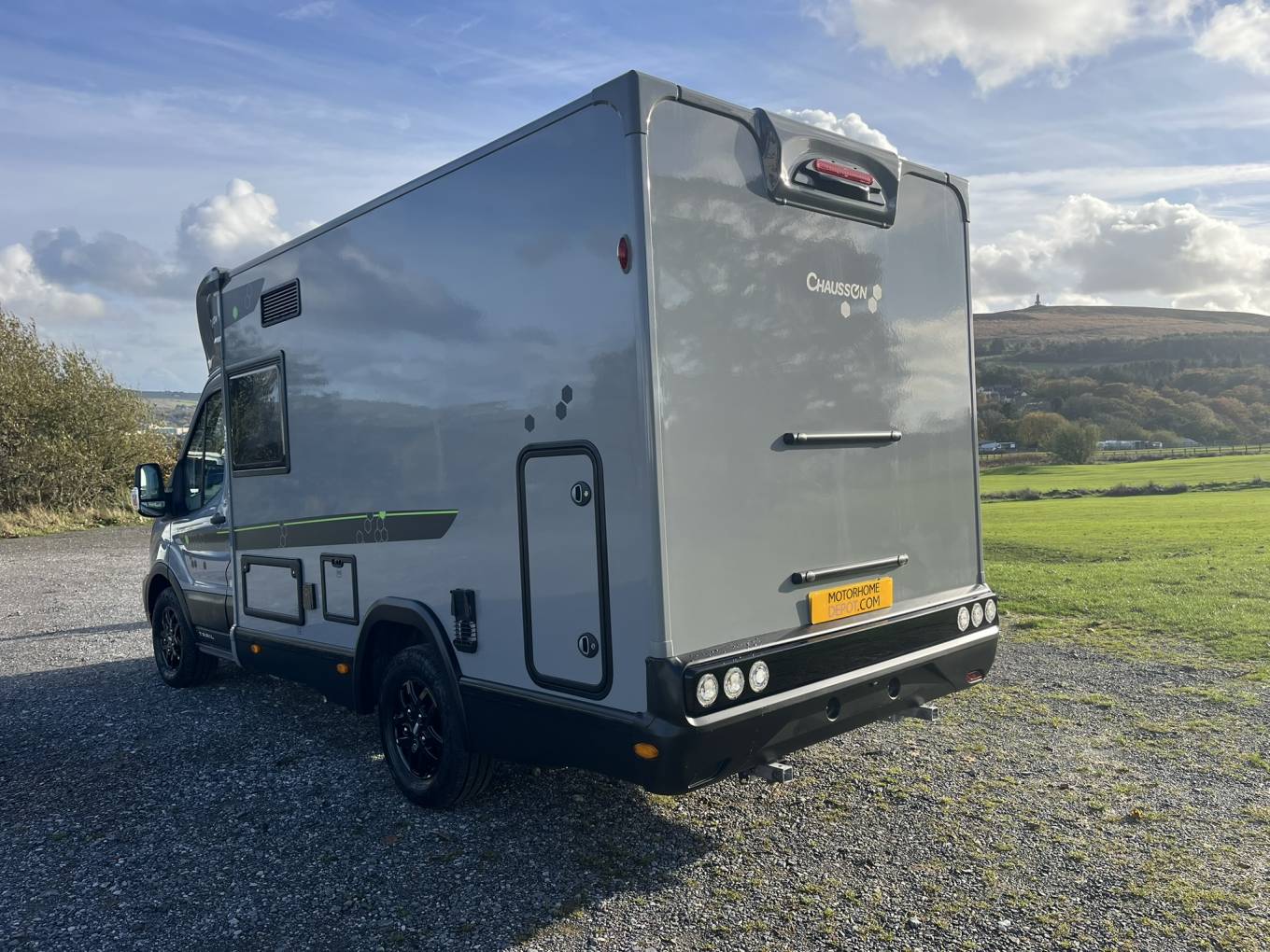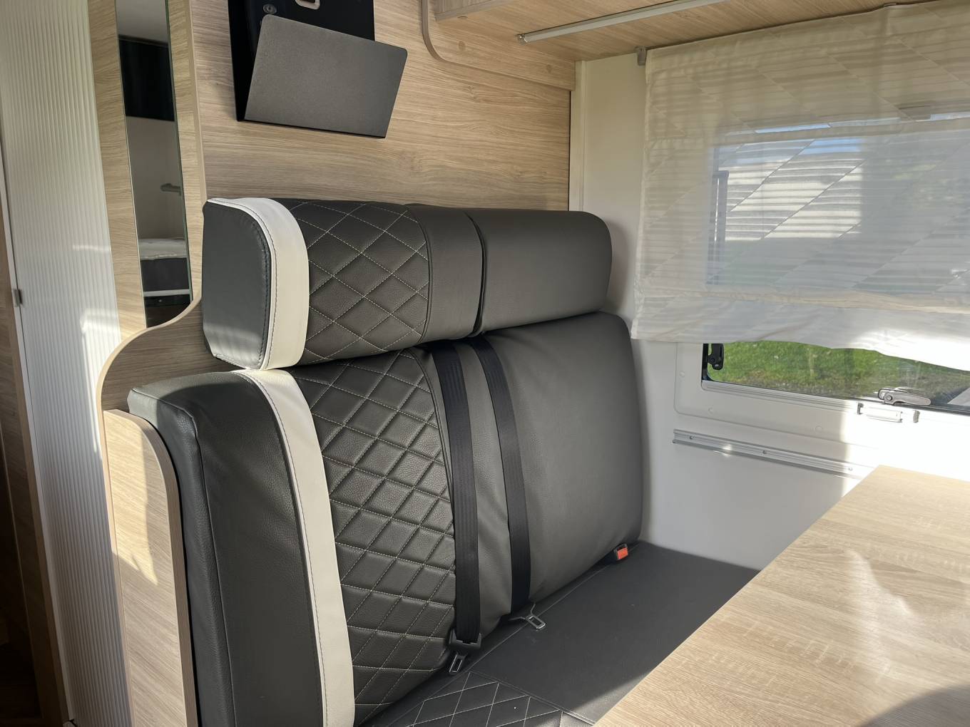 Rear transverse fixed bed over Garage. Plenty of storage. The bed can fold to access more space and a hatch through to the Garage (great for Dogs)