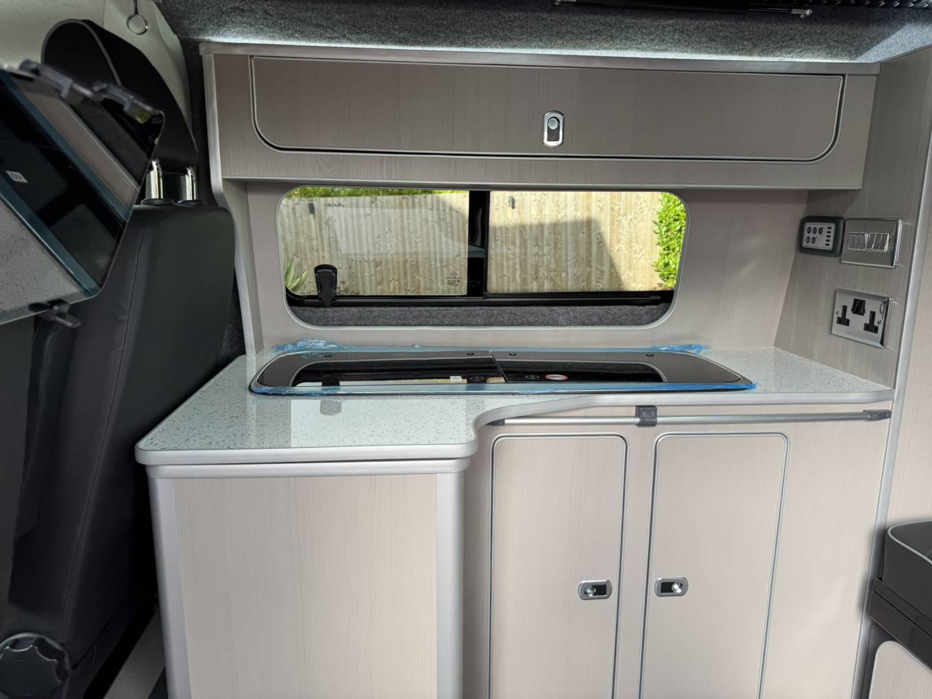 Inside, the high-quality interior has been beautifully designed and crafted, featuring premium materials and a modern finish throughout. The pop-top roof provides additional sleeping space and generous headroom, making it ideal for both short getaways and extended trips.