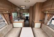 Starting at the very rear of the motorhome, you will find the U shaped lounge, offering both comfort and flexibility. With a freestanding stow-away dining table and plenty of storage above and below the seating, this area converts effortlessly into two single beds at 1870mm long or a large double measuring 2100mm x 1700mm, depending on your preference.