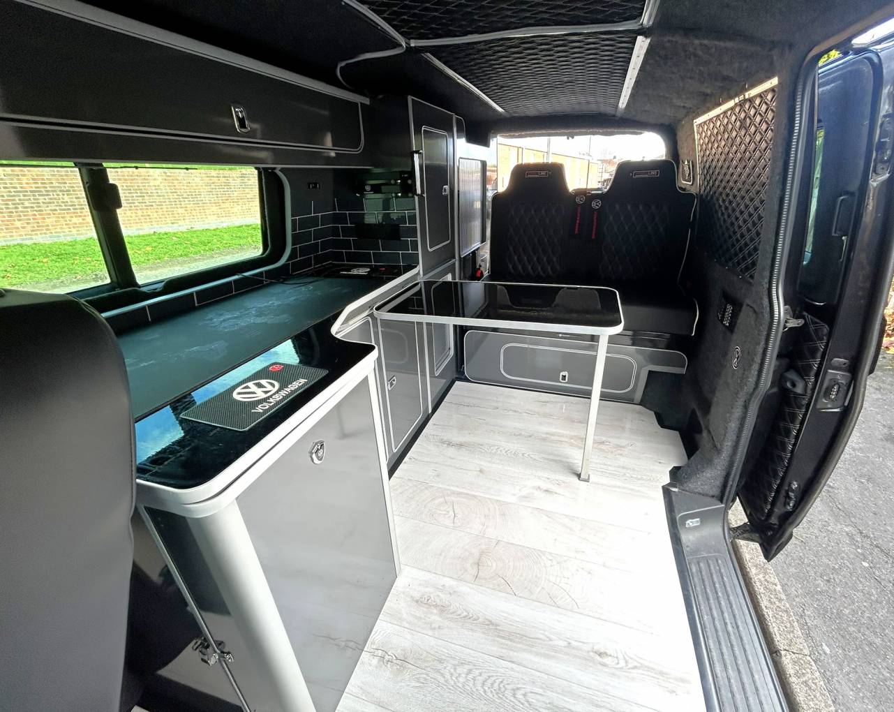 The Highline comes with 4 seat belts, DAB radio & CD with Bluetooth, electric windows, cab air con, cruise control, reverse camera, sat nav, LED Lights, mood lighting, upgraded and tinted light clusters both front & rear and alloy wheels. There is also plenty of storage throughout the van.