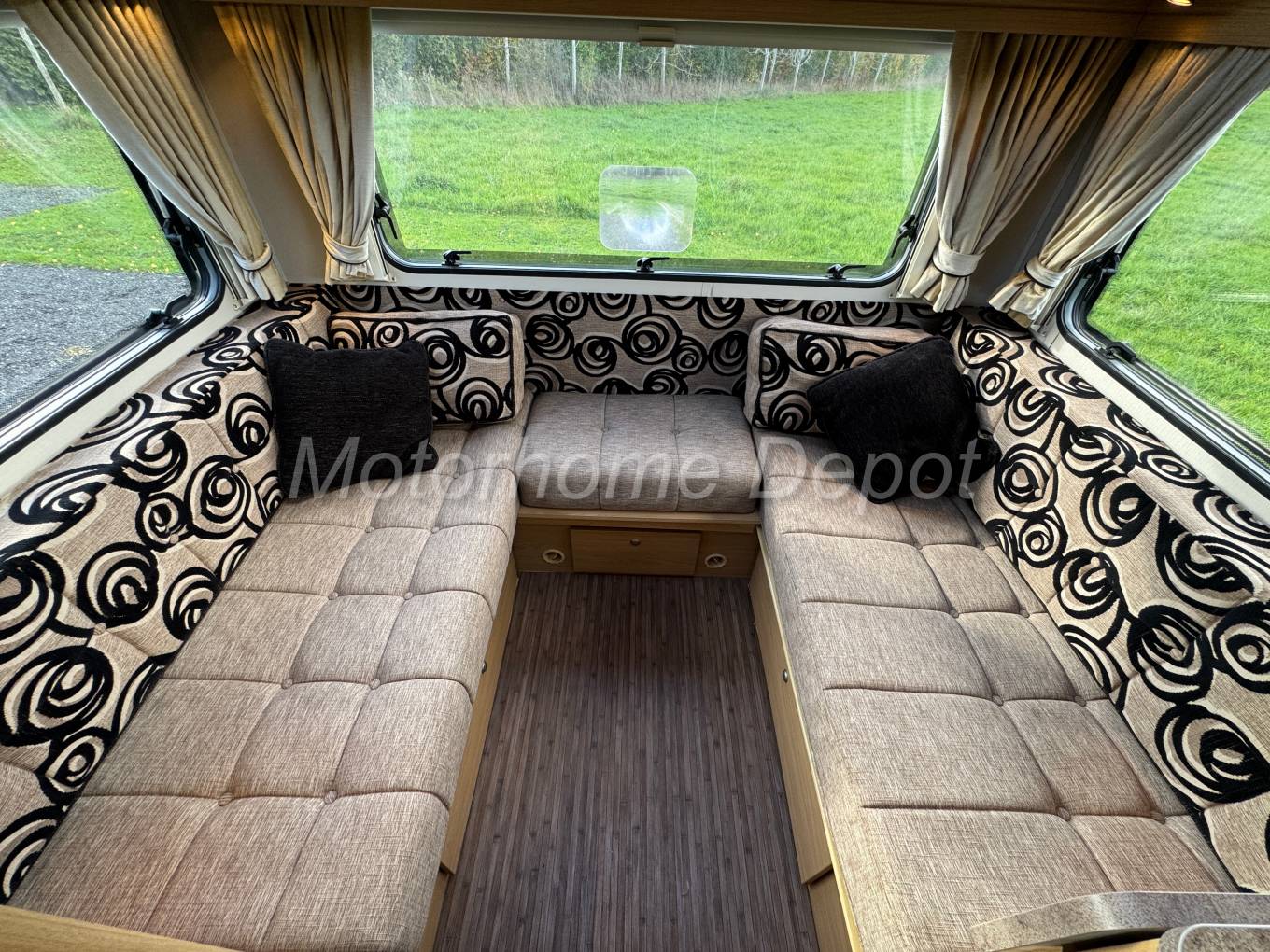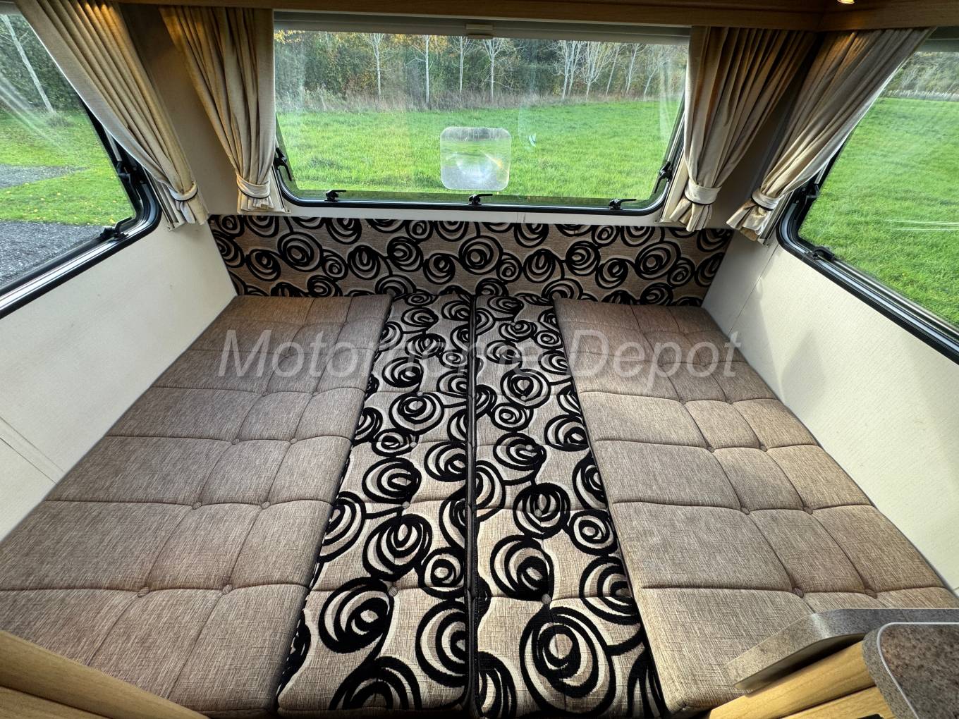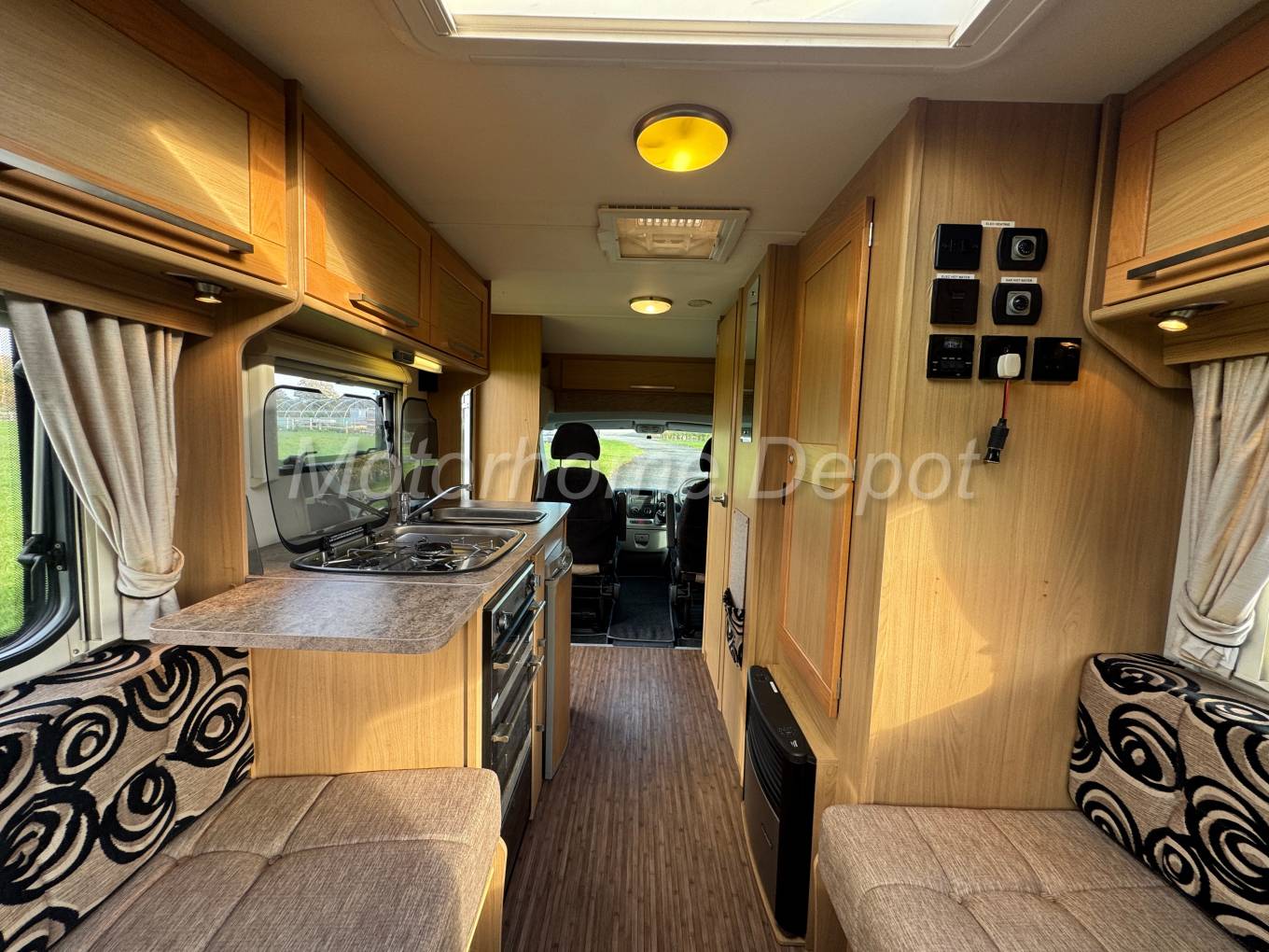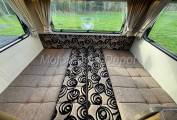 The Autoquest 120 features the ever-popular rear lounge layout, offering a bright, airy living space with wraparound seating and large windows on three sides. By day, it’s the perfect area for relaxing, dining, or entertaining; by night, the settees quickly convert into a large transverse double bed for a restful night’s sleep.