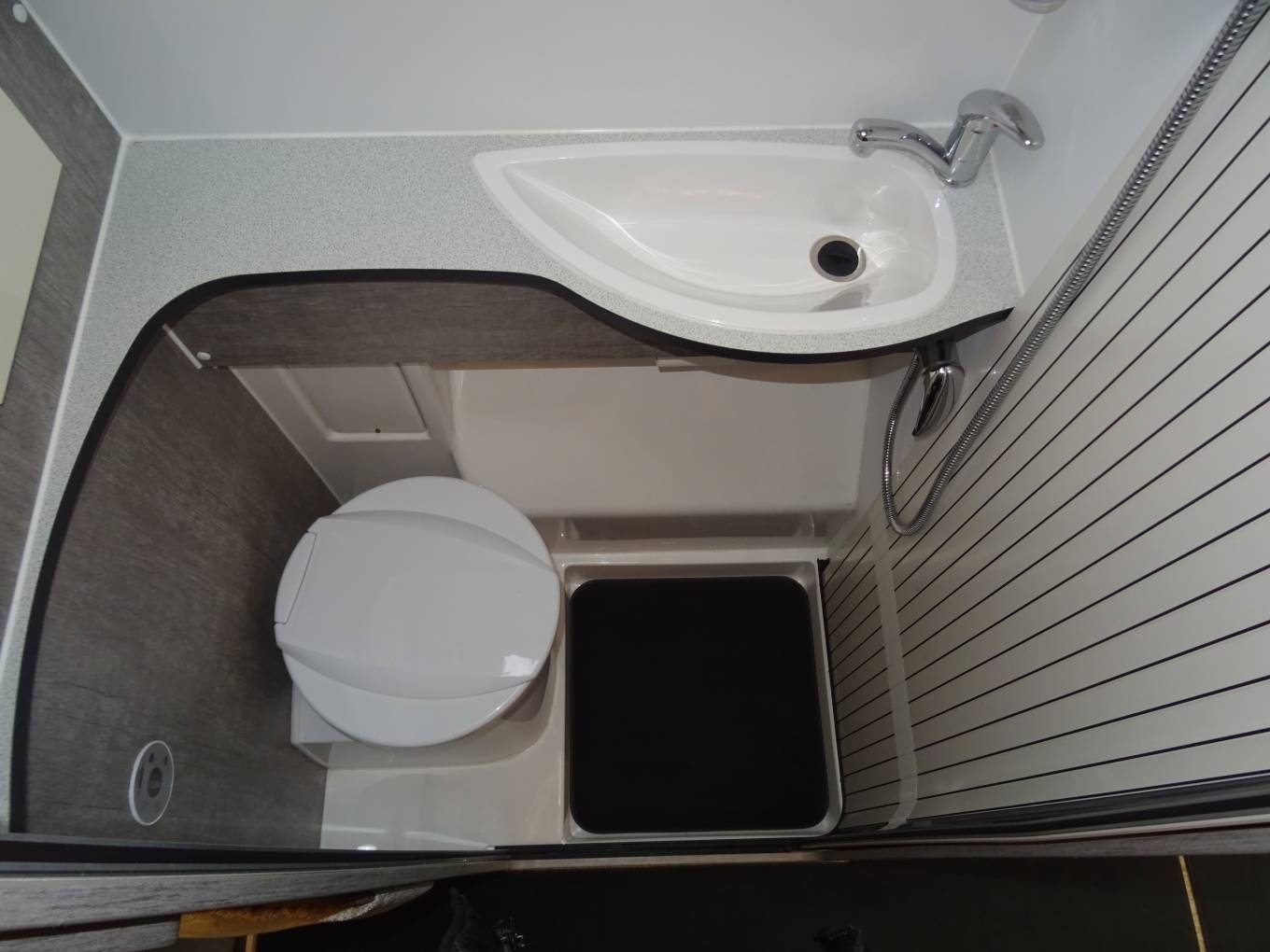 As you enter the side door to the back you have the kitchen, complete with an oven & grill, gas hob, fridge/freezer and sink with hot & cold mixer tap and lots of storage space. Opposite is the compact washroom including toilet, hand washbasin and an integrated shower.