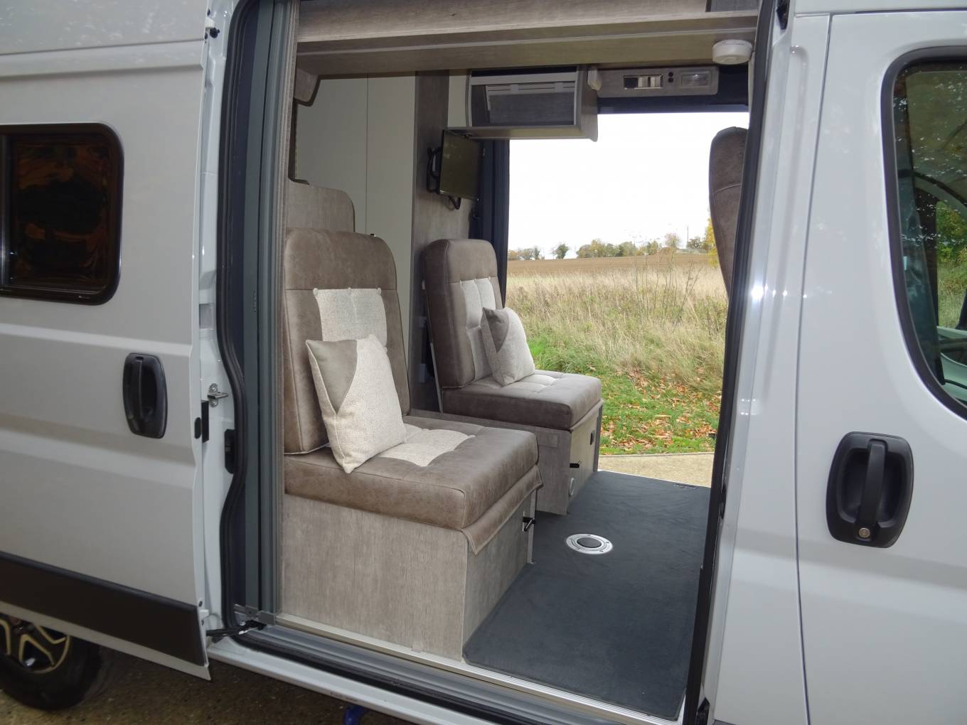 Other great features: 2 berth with 4 travelling seats, Diesel heating, Thule Bike rack, Avetex TV, Thule wind out awning, Outside BBQ point, Tracker S7, Forward facing camera, Ghost Immobiliser, insulated and heated underslung tanks, Habitation check completed in September, alloy wheels, insulated.