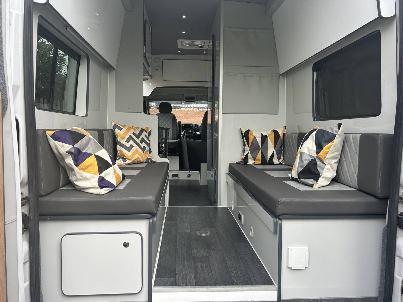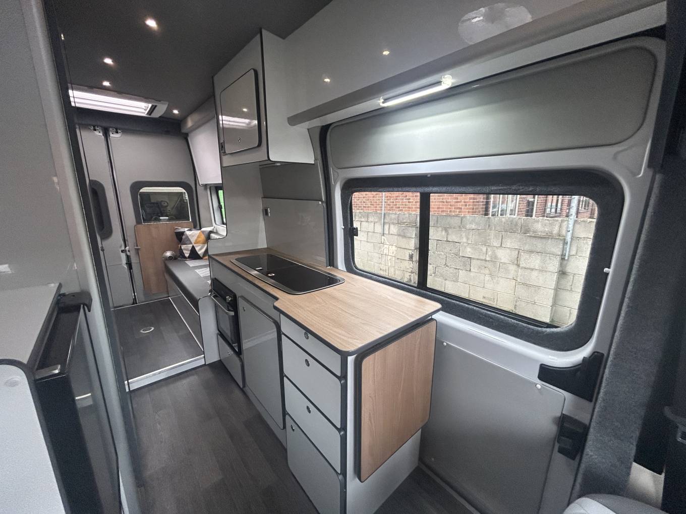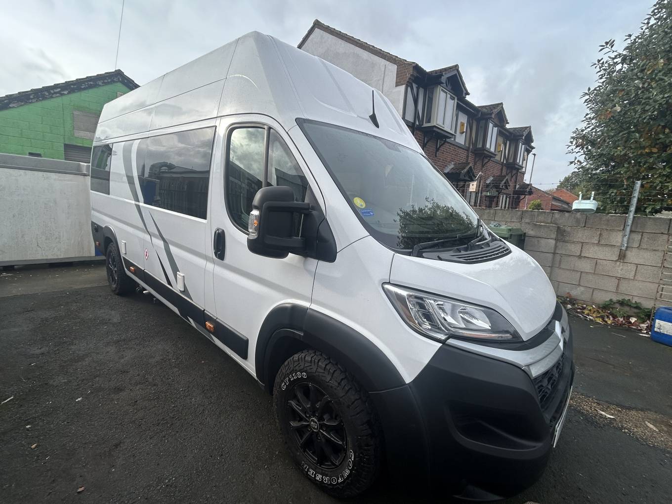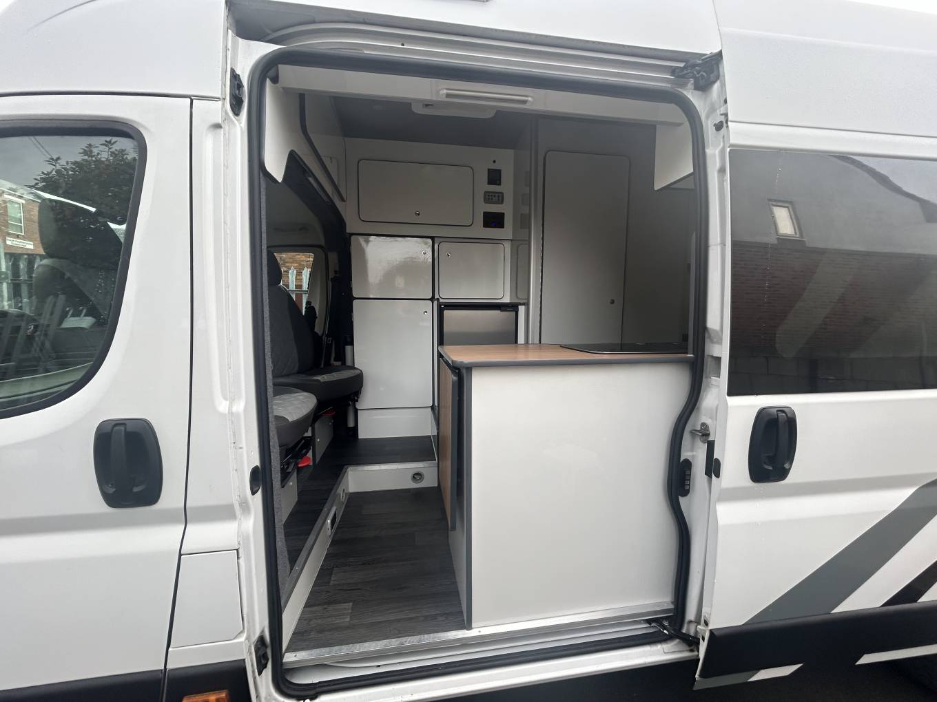 Motorhome Depot can offer you this brand new conversion by DA Campers in West Yorkshire. The vehicle is a 2021 Citroen Relay, and is an L4 H3, which means it's long and high, so it's great for people who are 6' plus. It's covered just over 40,000 miles and has full service history. It has satellite navigation, cruise control, cab air conditioning and bluetooth. This two berth is perfect for two people to have the adventure of a life time. the rear lounge can be made into a large double bed and if left made up there's still plenty of living space at the front as both the front seats are Captain swivel seats. The kitchen area has a full size fridge freezer, a gas oven with a grill and a two ring gas hob next to the sink and draining board. The gas is supplied from an underslung gas tank which is cheaper to fill than bottles and it doesn't take up any space inside the van. Also underneath the van are the fresh and waste water tanks. The bathroom has a shower, sink, cassette toilet and bathroom cabinet. If off grid is your preference, power is topped up with the solar panels and two 105amp leisure batteries. The van is fitted with a Sargent electrical system. Remus cab blinds are fitted for privacy. There is a sky light fitted at the rear of the van with a Maxi remote controlled two way fan fitted at the front. There's lots of storage including a hanging wardrobe. A hot water outside shower, heated by the Truma boiler you will be comfortable what ever the weather. This motorhome can be viewed in Wakefield by appointment only, part exchange and finance are available.