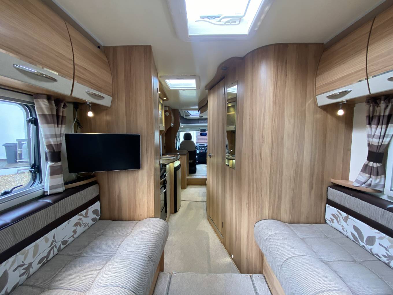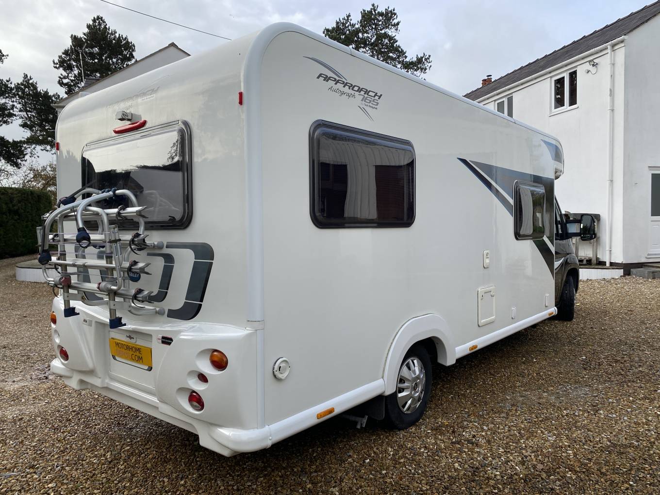 DAB radio, cab air con, cruise control, reversing camera, cab blinds, LED lighting, TV aerial, TV, microwave, ALDE wet heating & hot water, leisure battery, wind-out awning with wind breaker, awning floor, 2 gas bottles, 4 new tyres, 4-bike rack, seperate porch awning
