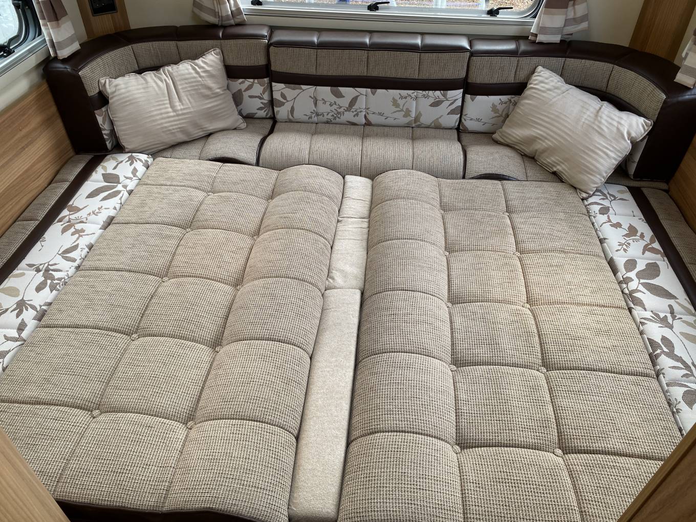 Rear U-shaped lounge converts to large double bed with excellent storage.