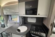 The Voyager 563 offers a bright, contemporary interior with a spacious front lounge that converts easily into a double bed, plus a comfortable fixed rear bed for added convenience.