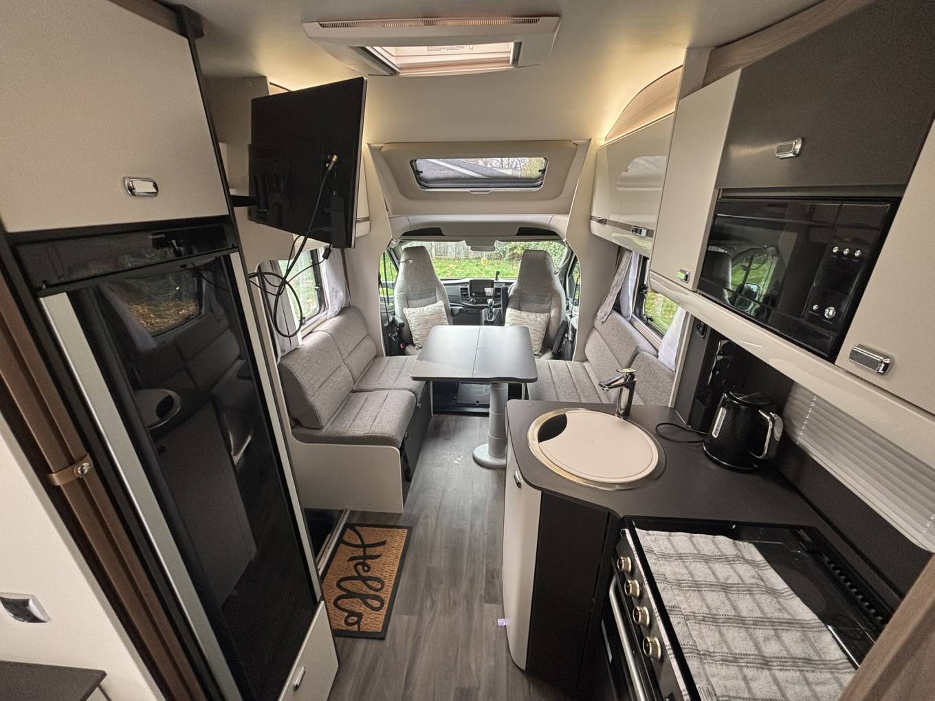 A well-appointed kitchen and a luxury washroom with separate shower make this motorhome ideal for both extended tours and weekend escapes.