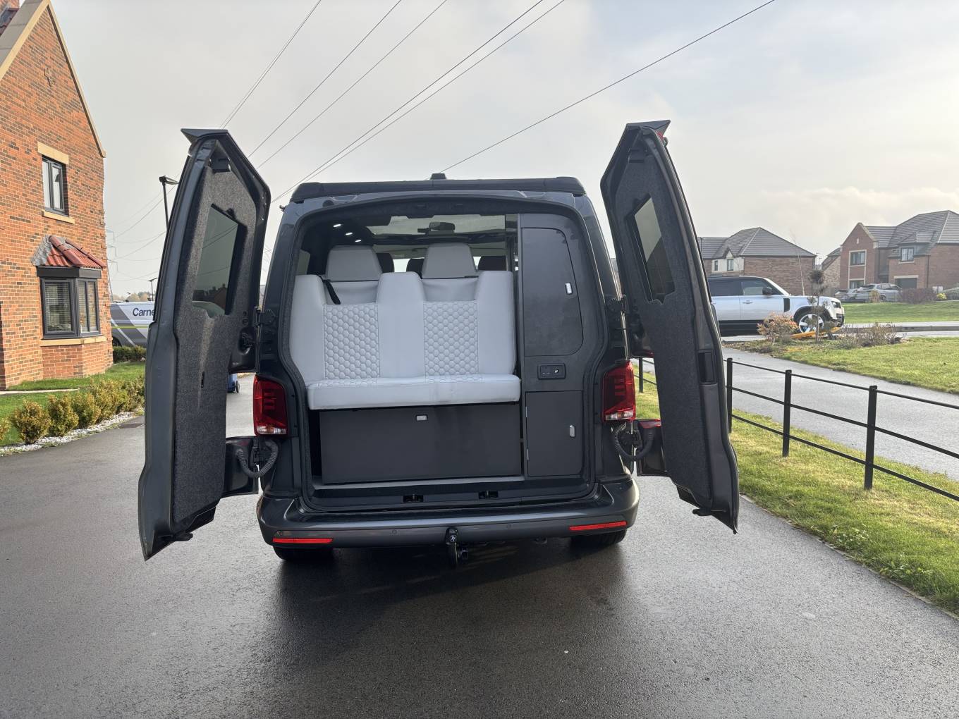 Finished in a sleek grey metallic with white stitched interior with a high-quality interior fit-out, this VW campervan turns heads wherever it goes.