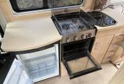 The washroom offers all the facilities you will need on your travels, namely a shower and a Thetford cassette toilet. There is also a wash basin with a mixer tap and a mirrored bathroom cabinet to store your toiletries.