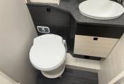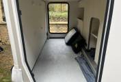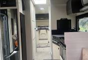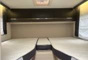 Sleeping is via the Rear Fixed Bed which can be either 2 x Singles or with an easy infill can be one Very Large Comfortable Double. There is also a Privacy Door for this Area. A further Double is via the Electric Drop Down Bed situated over the Front Lounge ( this has never been used ) and accessed via a Ladder