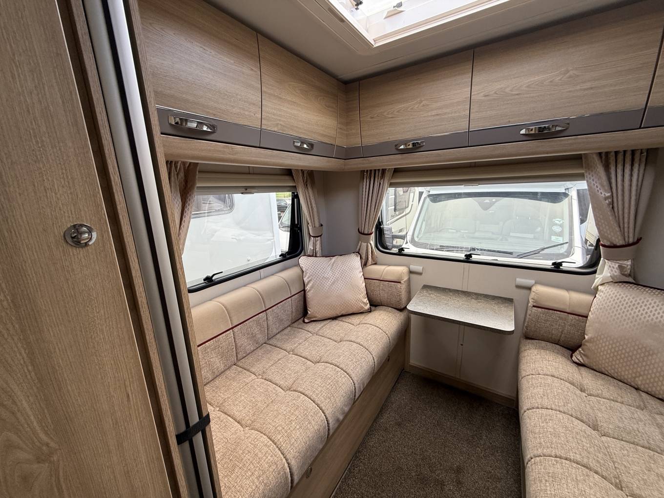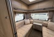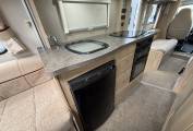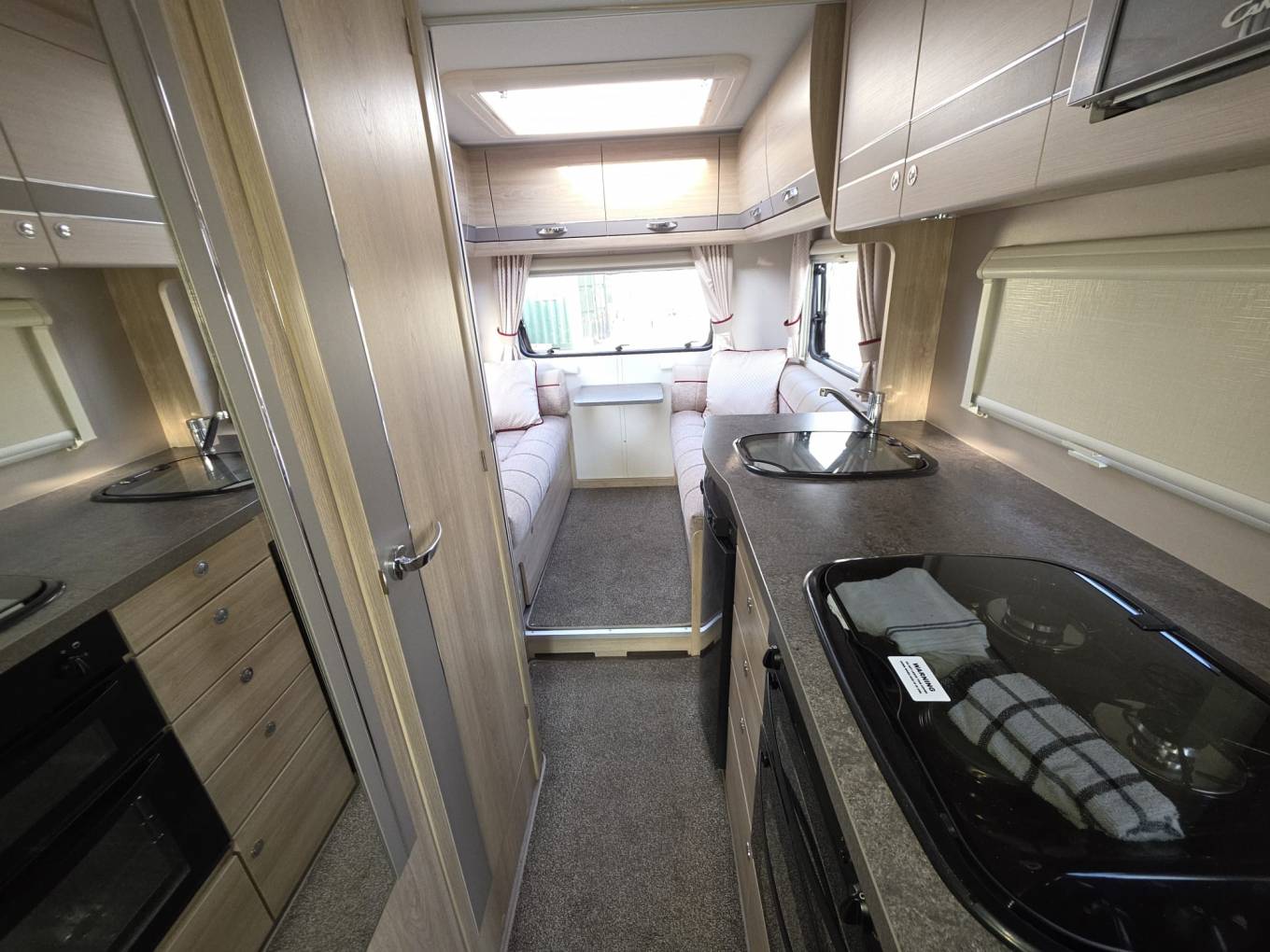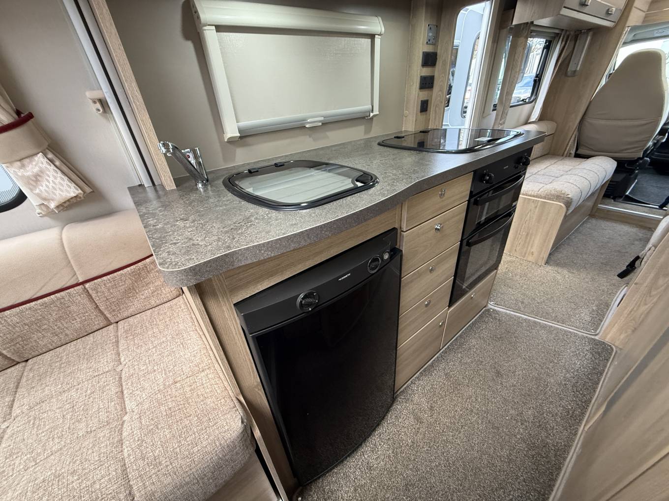 Bathroom has a shower, wash hand basin, cassette toilet and a vanity mirror. The kitchen is fully equipped with a full sized dual fuel cooker, fridge freezer, sink, microwave and plenty of workspace.