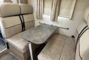 The U shaped lounge at the rear can be used for sleeping, relaxing and dining. The dining area converts into a double bed and there is an electric drop down bed to accommodate another 2 people.