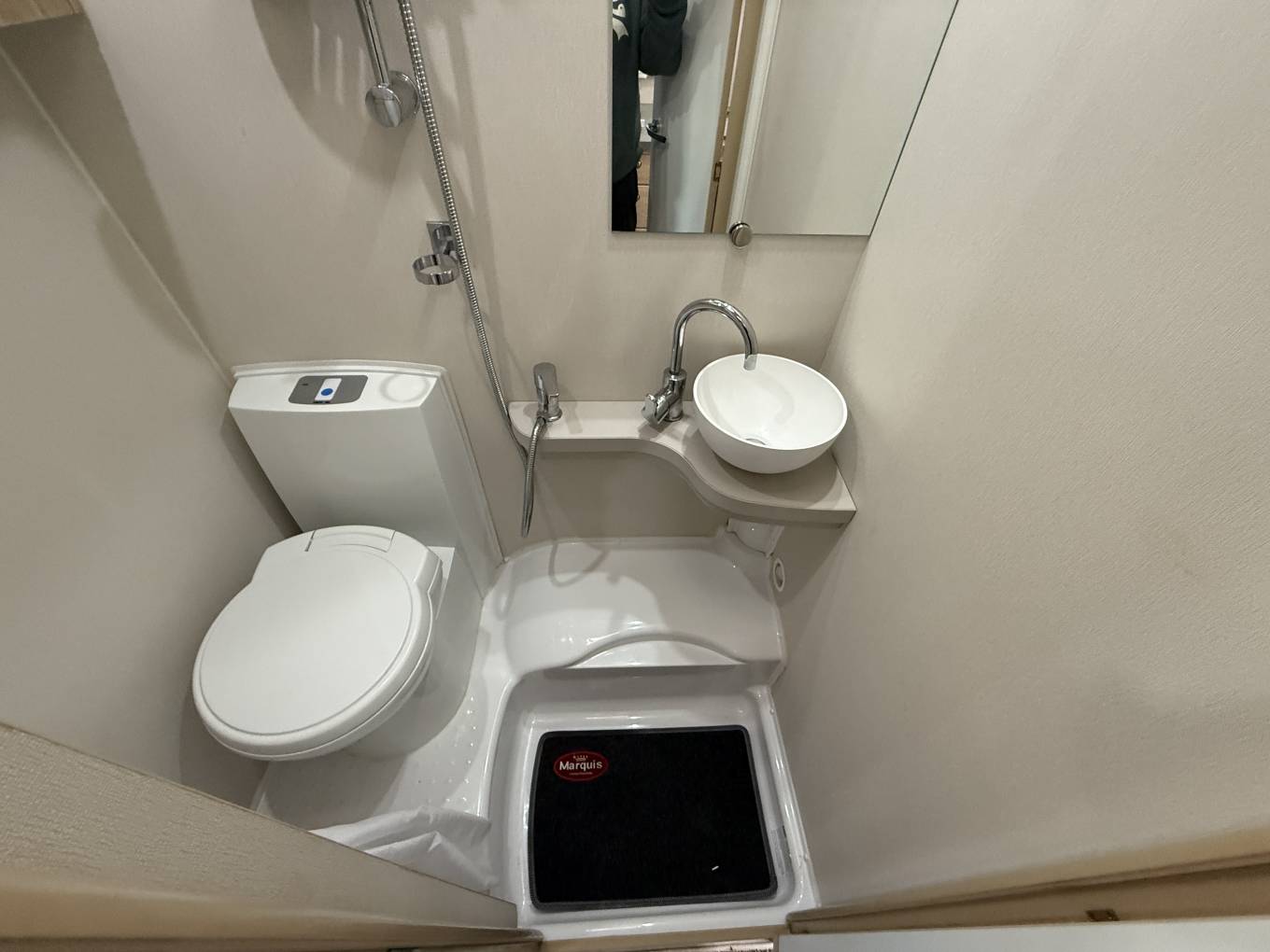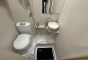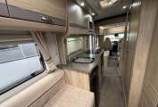 Heating and hot water provided by the Whale system. Additional extras fitted the this family motorhome include Alloy wheels, a bicycle rack, Truma solar panel, reverse camera, cab blinds, shower point, Bbq point and removable carpets.