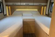 Layout features rear fixed beds over a very large garage, an infill allows for a full width double should you wish, both beds have adjustable back rests.