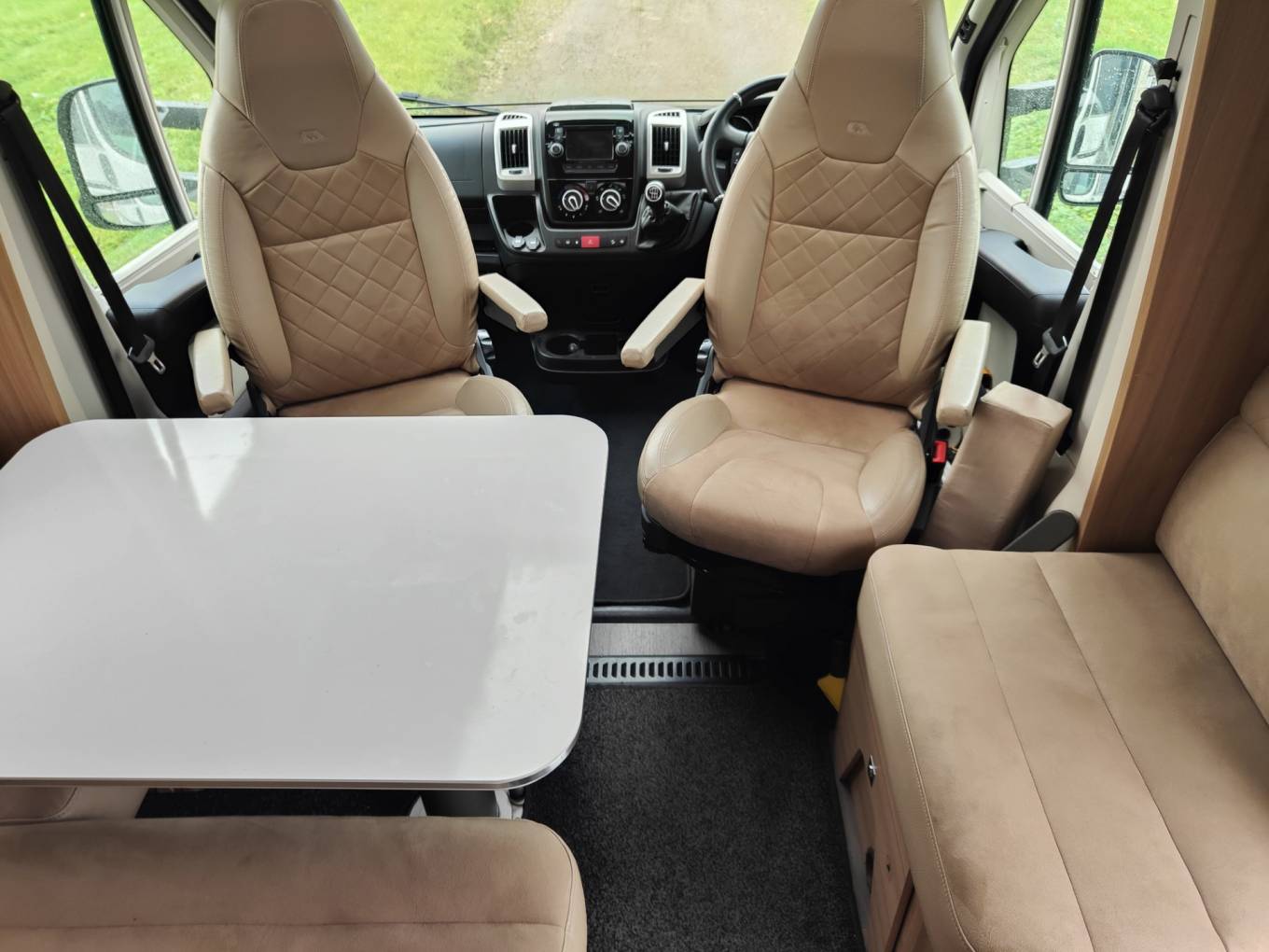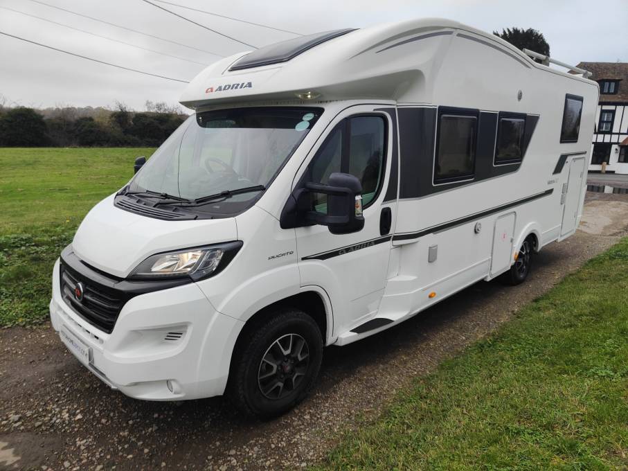 This is an outstanding examples of Adrias best selling Matrix 670sc plus. This 5 berth, 5 seatbelt model features the desirable island bed to the rear with a garage underneath plus a drop down double above the front dining area. This 7.49 metre long motorhome is plated at 3800kgs so a C1 licence will be required. This low profile motorhome is based on the excellent Fiat Ducato cab with the 2.3 multijet engine that produces 130bhp with a 6 speed manual gearbox, cruise control and cab aircon. Excellent standard spec with the addition of a satellite dome, Awning with full enclosure, reverse camera, 3x cycle rack, towbar and a tv with aerial. 10,755 miles from new with great history. Last hab check in october 2025 and last engine service september 2025. Mot until october 2026. A great low mileage example that is in excellent condition. 2 year warranty included for peace of mind. Based in Kent and more pictures available.