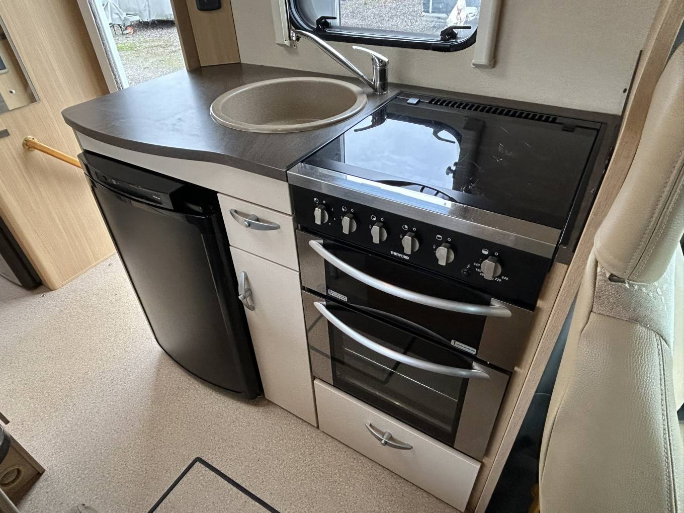Navigation is handled by a premium Garmin sat nav (worth £450), and entertainment is covered with a built-in TV/DVD system. A drive-away awning is included, offering extra living space when pitched, and four new tyres fitted in August 2024 ensure safe and smooth travel.
